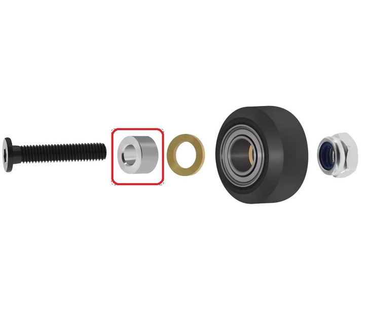✅ Їх можна успішно використовувати як точну відстань у системах V-SLOT, зокрема. як розпірний елемент, який використовується разом із роликами для створення візків, що рухаються по профілях V-SLOT.