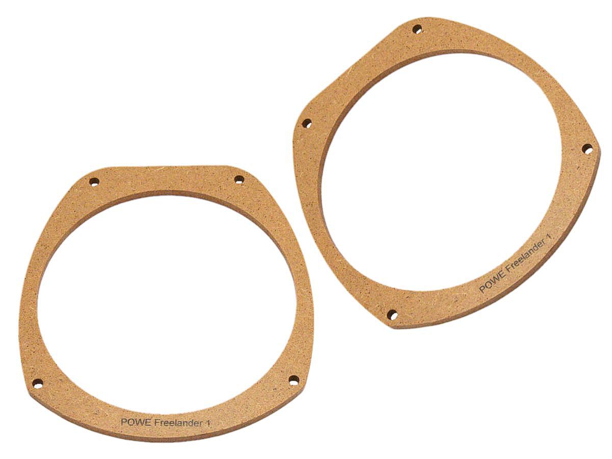 Просочені та подвійно лаковані розпірки динаміків з МДФ, призначені для стійкої установки динаміків у заводських місцях кріплення автомобіля. Якість і точність виконання забезпечується технологією ЧПУ. Після фрезерування розпірки Powe додатково шліфуються, а потім наносяться три шари захисту від вологи (один шар просочення і два шари прозорого лаку). Шліфування розпірної поверхні після фрезерування та лакування дозволяє отримати щільне гладке захисне покриття по всій поверхні, включаючи лінію різу, яке ефективно перешкоджає проникненню вологи всередину МДФ.