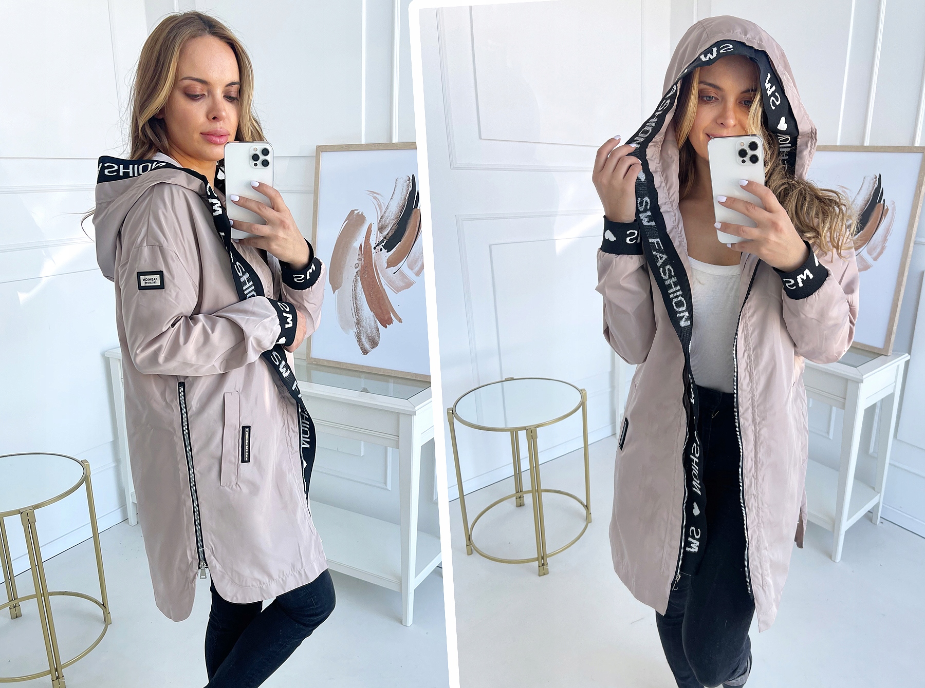 - Наймодніша трикотажна обробка на блискавці, капюшоні та рукавах.