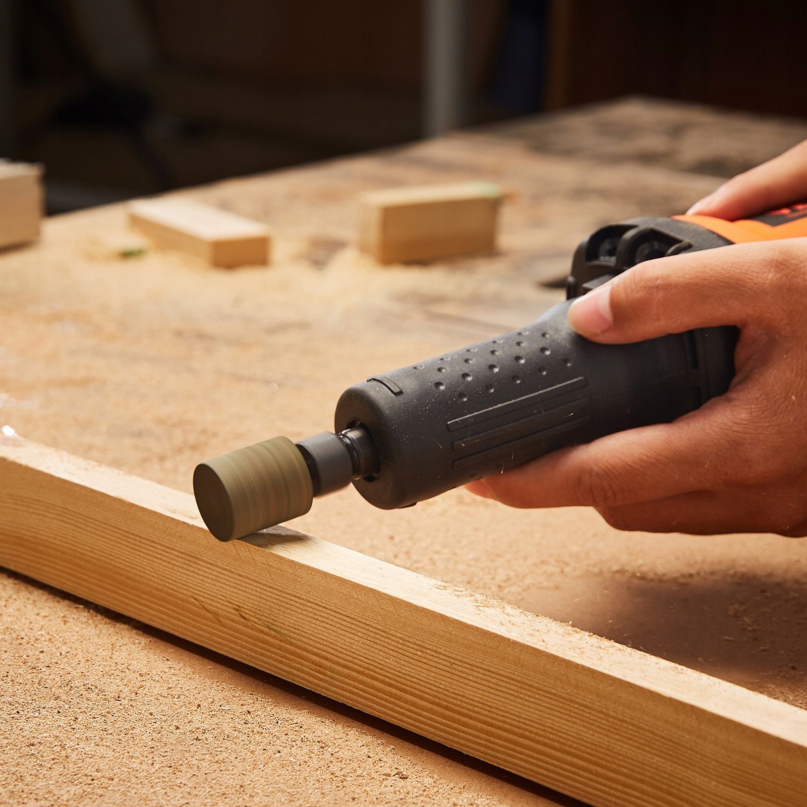 включає 1/4 дюймові стиснення рукавів (приблизно 6 мм) та 1/8 дюйма (приблизно 3 мм), що робить його сумісним з широким спектром аксесуарів. Ви можете видалити іржу, полірувати, подрібнити, вирізати і загострювати - справжній багатофункціональний інструмент!