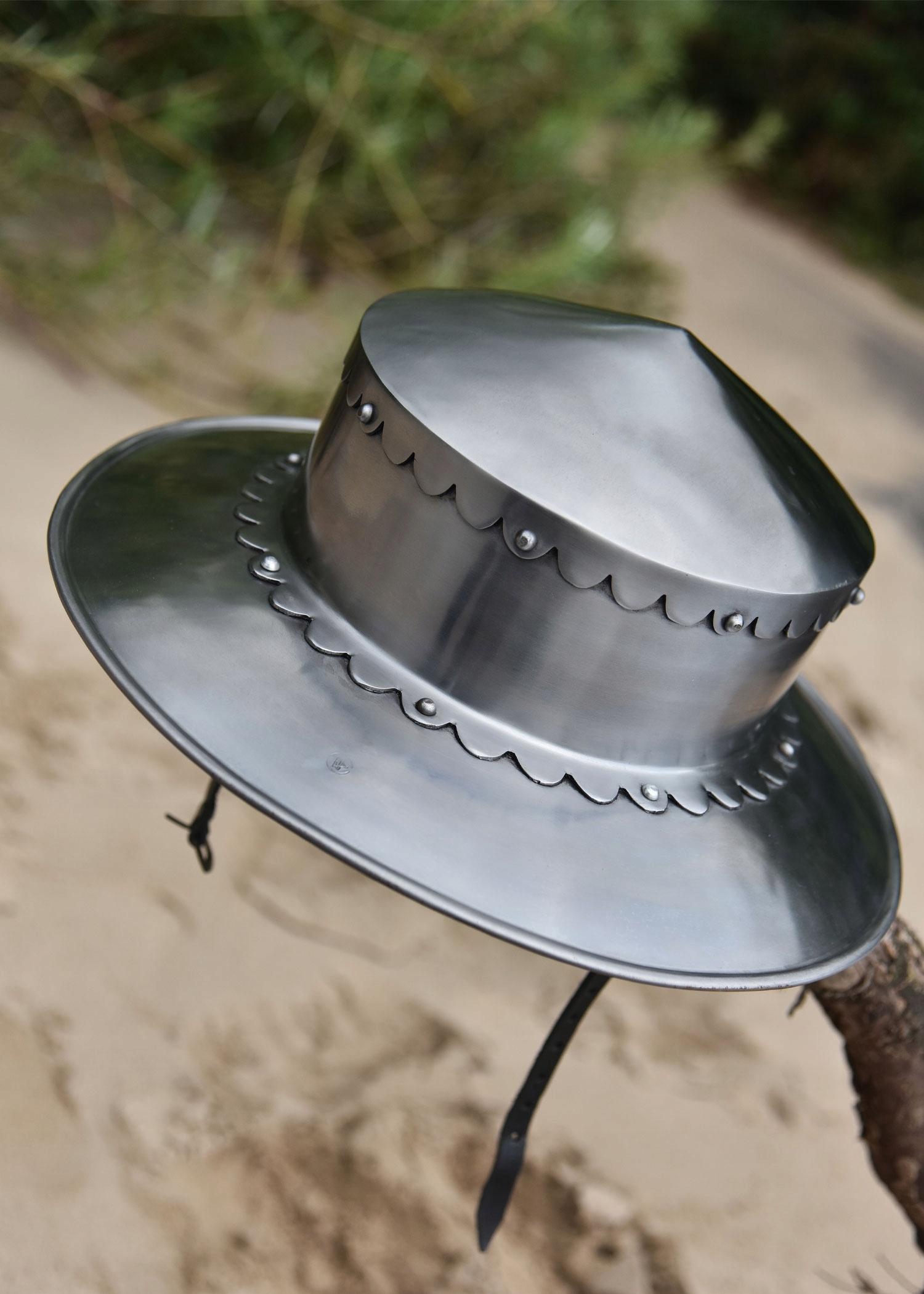 шолом Капалін - Репліка відноситься до оригіналу з чотирнадцятого століття. У кінці середньовіччя цей тип Капалін був популярним по всій Європі, особливо серед піхоти. Його шарм лежить у простому, але красивому формі та у хвилястій візерунку на навісі та кругому. Таким чином, шолом є правильним розміром