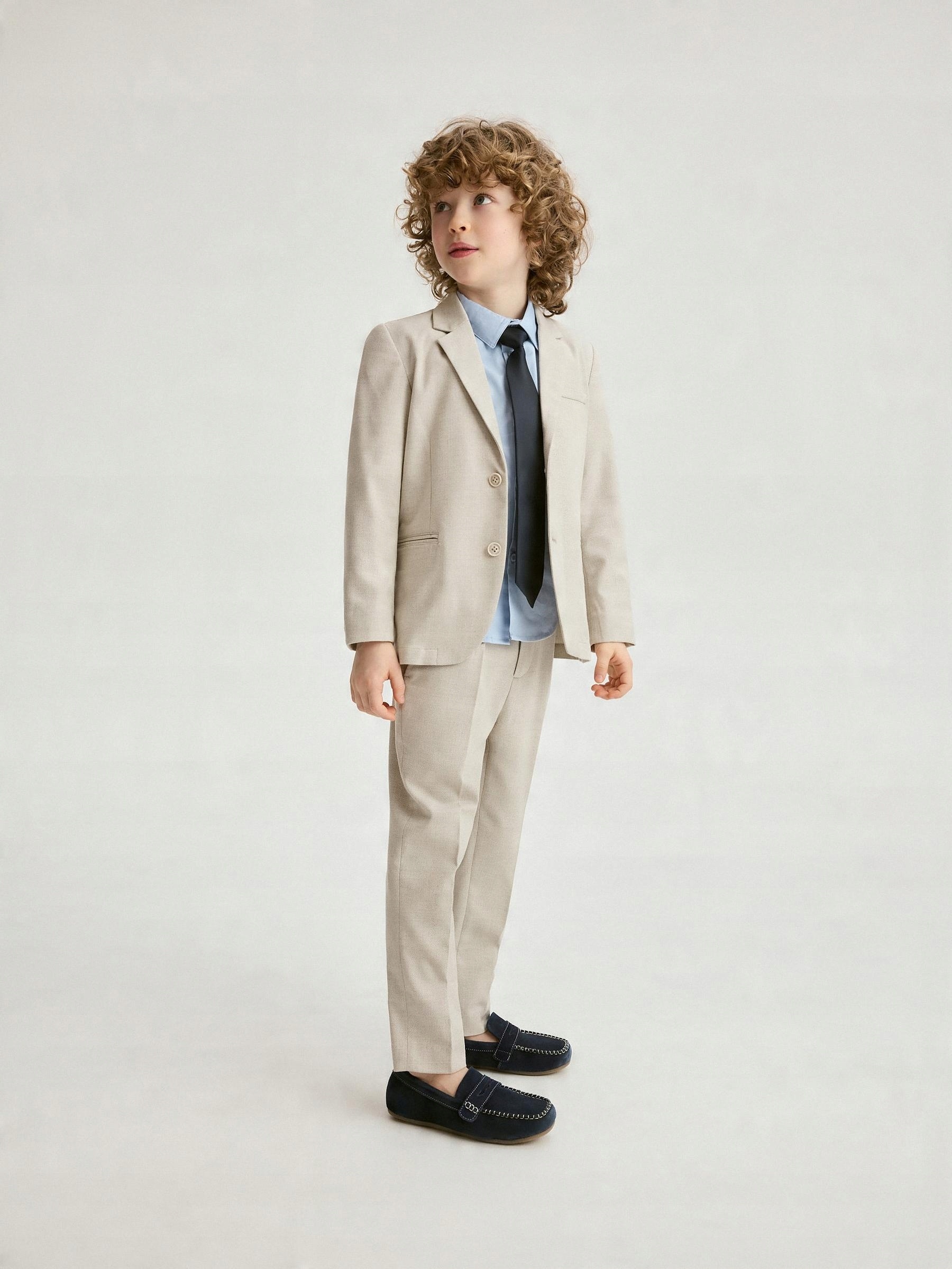 ПРОСТИЙ КЛАСИЧНИЙ БЕЖЕВИЙ ОДНОБОРТНИЙ ПІДЖАК З КИШЕНЯМИ 152