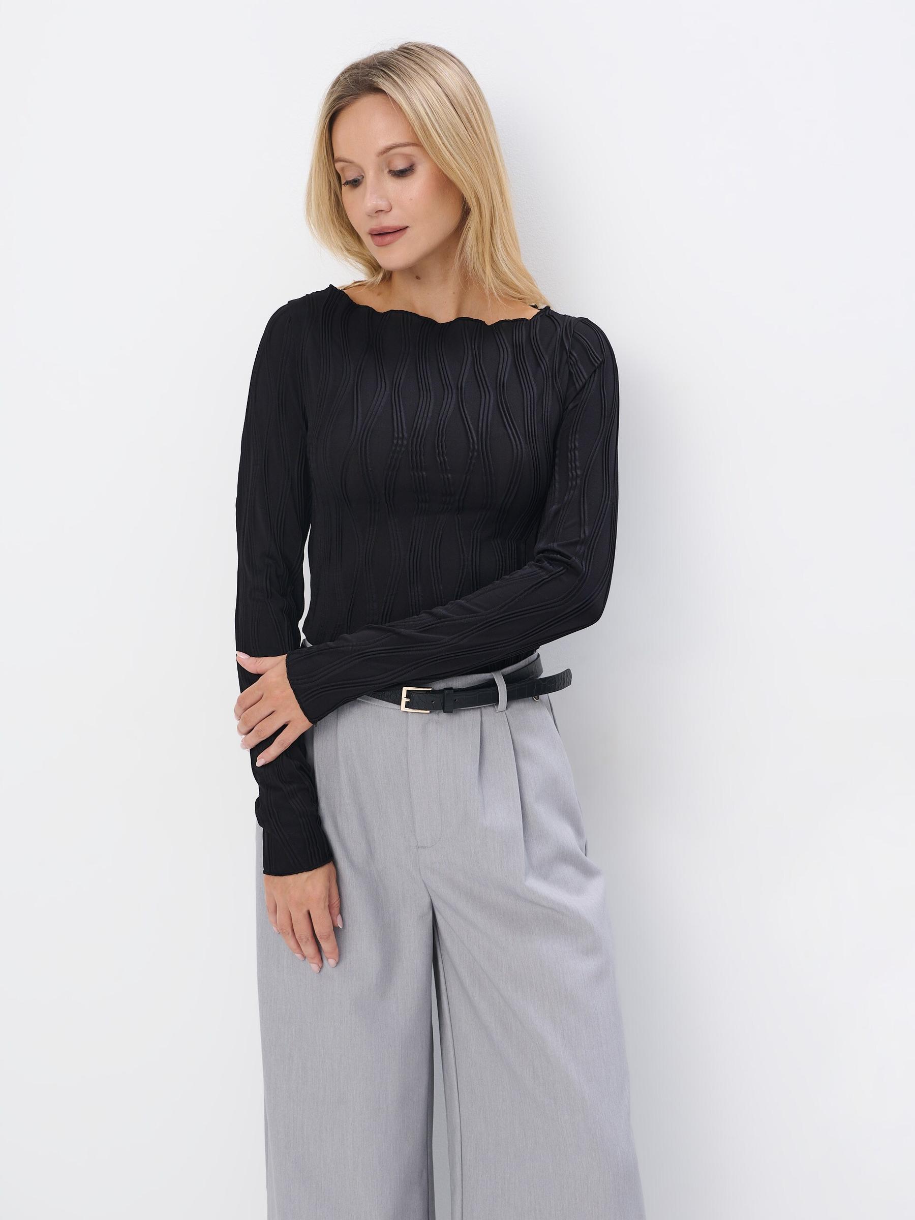 Простий класичний чорний кравець верхньої текстури з довгим рукавом XL