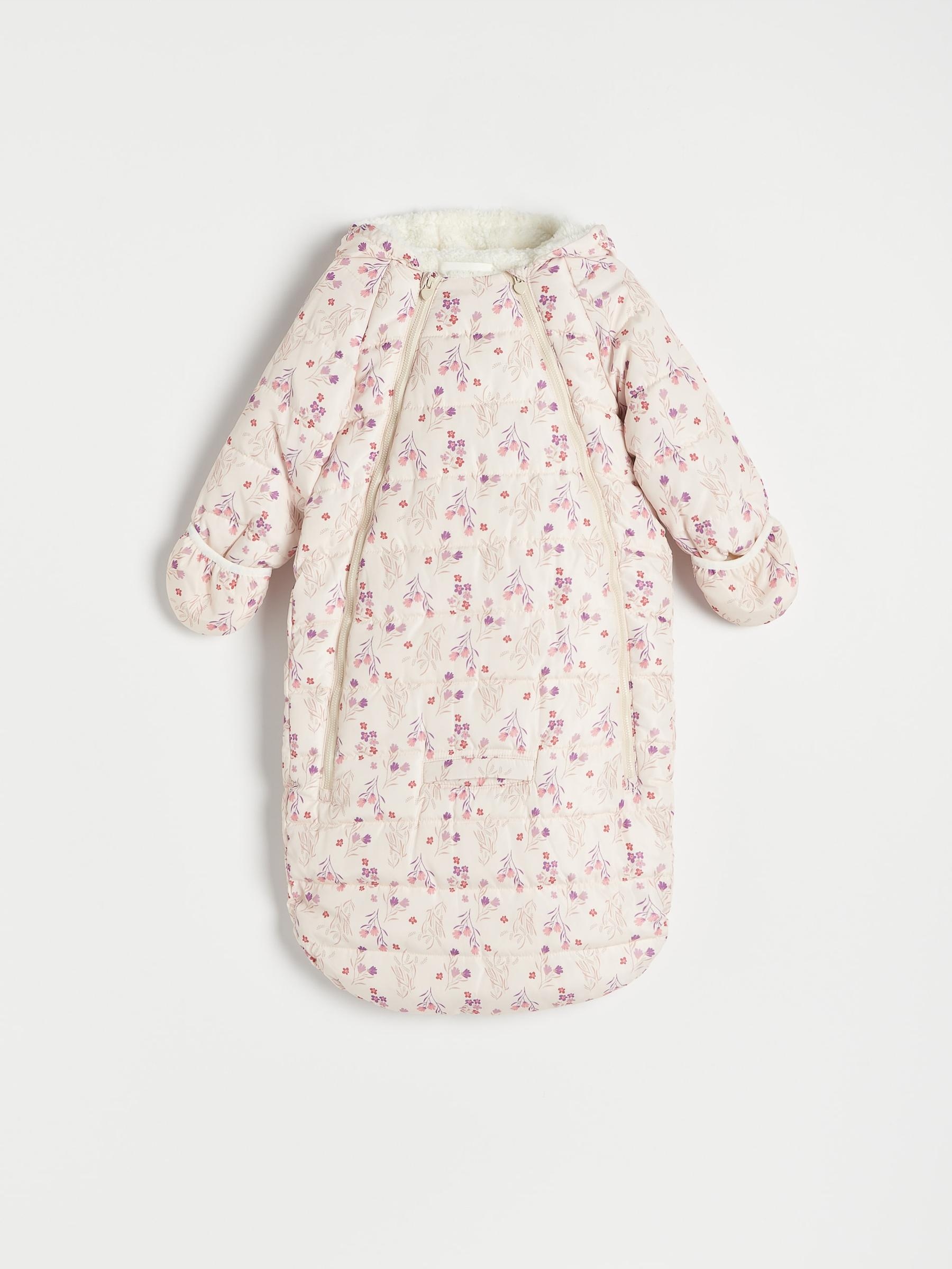 ПРОСТИЙ КЛАСИЧНИЙ СПАЛЬНИЙ МІШОК БЕЖЕВОГО УТЕПЛЕННЯ З КВІТАМИ, КАПЮШОН НА БЛИСКАВЦІ 74