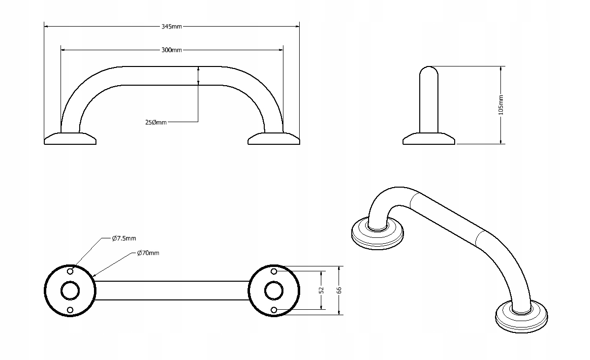 Простий поручники для інвалідного типу PTP/ PTM 333 - це продукт з універсальним використанням, виготовленим з нержавіючої сталі AISI304. Представлений прямий поручка готували з трубки діаметром 25 мм і товщиною стінки трубки 1,5 мм. Його довжина - 300 мм, а максимальна здатність навантаження - 120 кг. Він адаптований для монтажу стін.