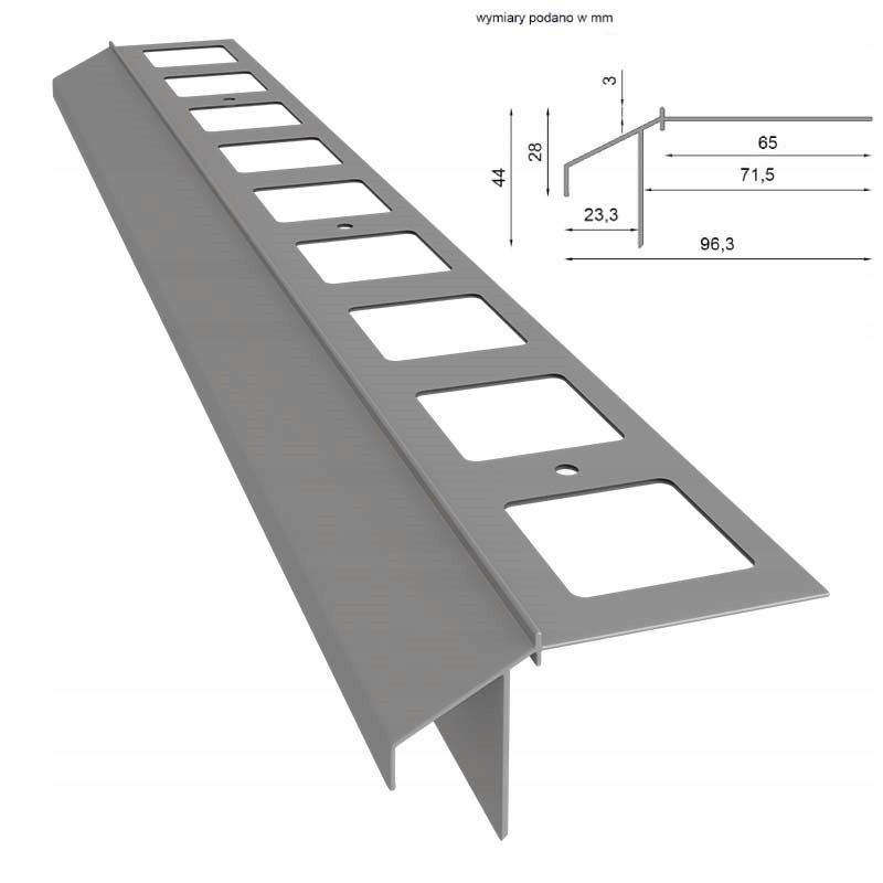 між куточками Renoplast K100R, ми влаштовуємо простий профіль K100R, ми позначаємо на основі простору для монтажних отворів. Ми видаляємо профіль, а потім просвердлює кріпильні отвори.