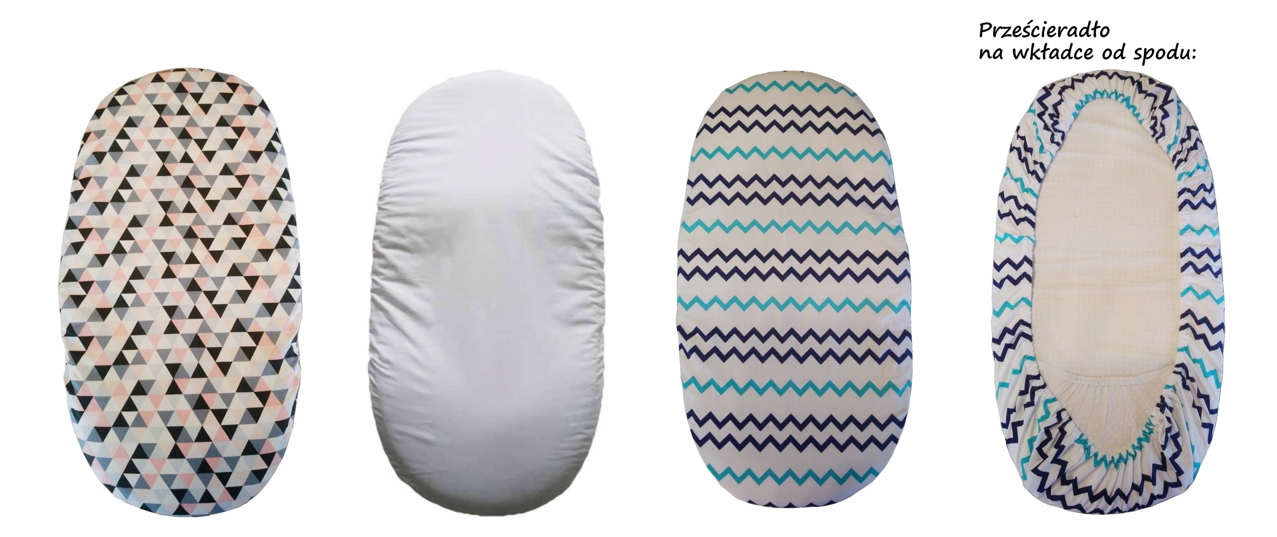 Простирадло виготовлене з 100% бавовни, з одностороннім принтом, на гумці, розмір приблизно 50x90 см. Він на кілька сантиметрів більший за вкладиш у гондолі, тому його можна легко гарненько розтягнути та засунути зайве під вкладиш.
