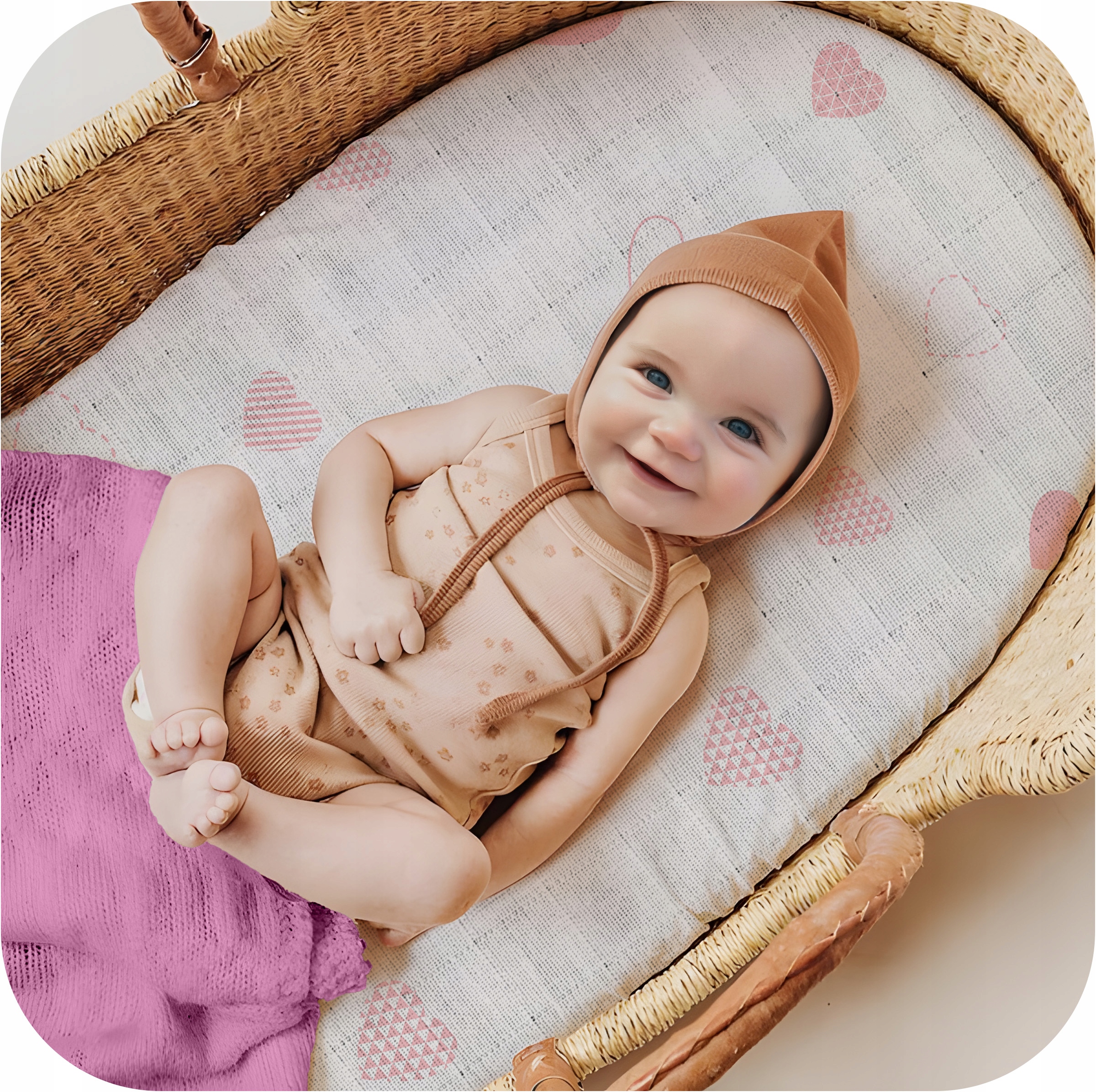 Вибір правильного аркуша має вирішальне значення для комфорту та гігієни дитини під час сну та відпочинку. Гнучка гумка змушує аркуш ідеально приклеїтись до кошика гондоли або Мойсея, гарантуючи, що він залишається на своєму місці без ризику ковзання.