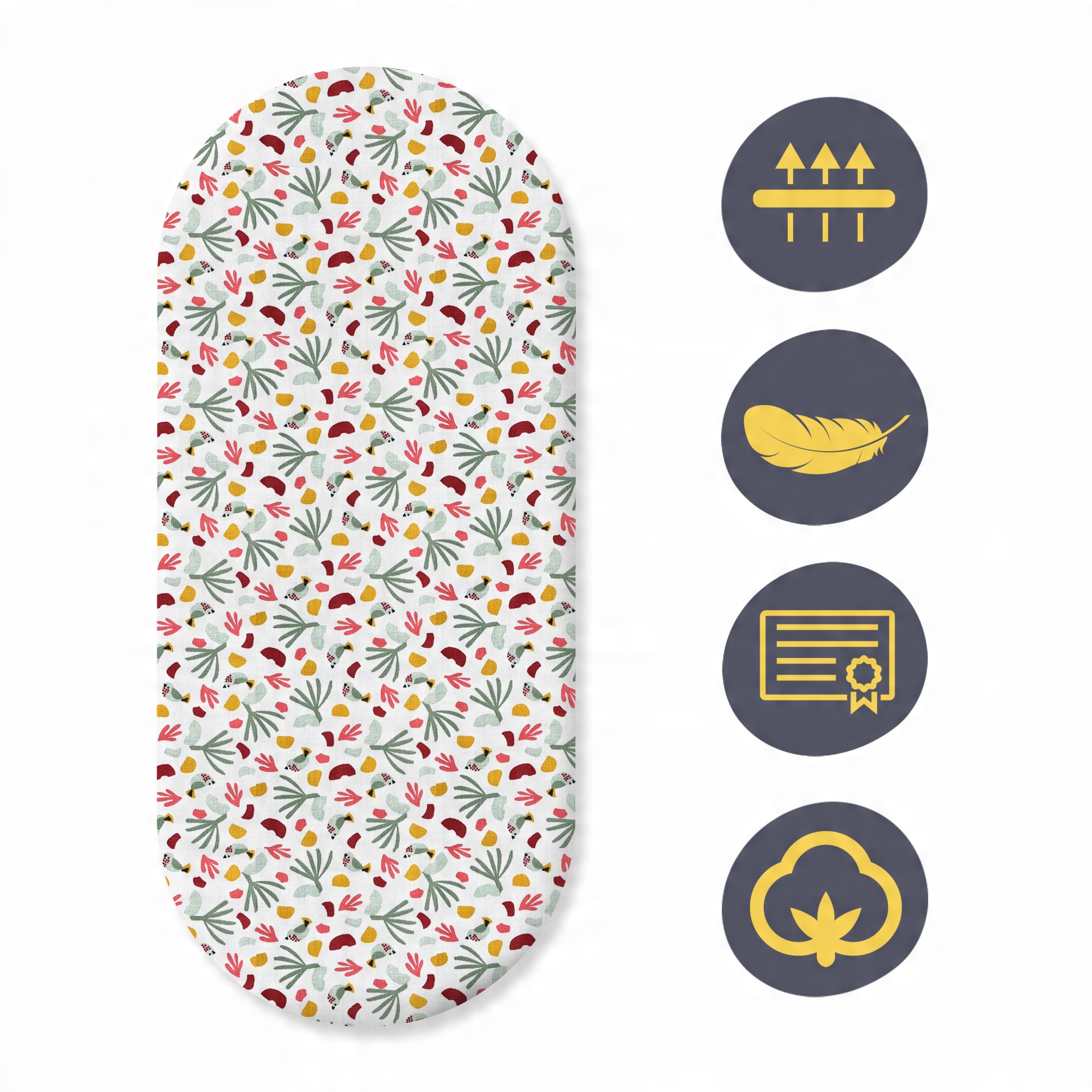 Простирадло антиалергічне та безпечне для чутливої шкіри малюків. Має еластичну стрічку та адаптовану до матраца форму. Підходить для більшості гондол, доступних на ринку.