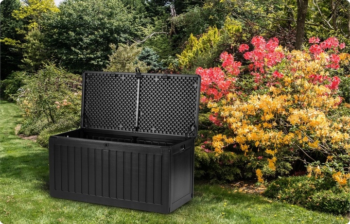 містка садової коробки передач полегшує сховище у саду, на балконі та навколо будинку необхідних речей, якими ми користуємося щодня (подушки, матраци, обкладинки, іграшки) та багато інших речей.