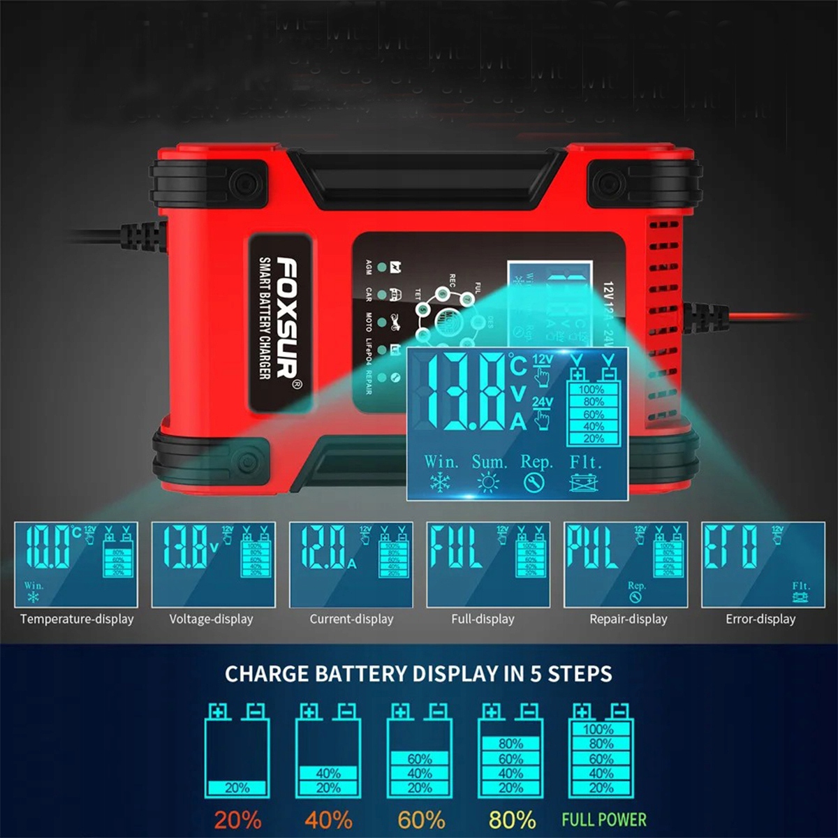 PROSTOWNIK AUTOMATYCZNY SAMOCHODOWY FUNKCJA NAPRAWY DO AKUMULATORÓW 12V 24V
