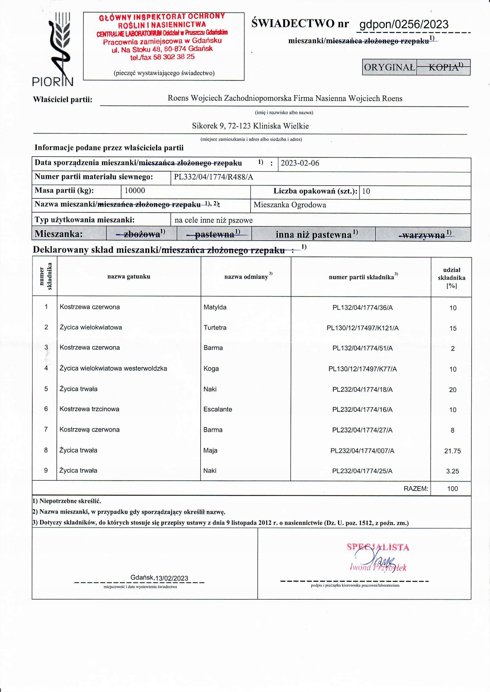 - Насіння трав лабораторне, суміш має сертифікат якості (сертифікат PIORIN нижче)