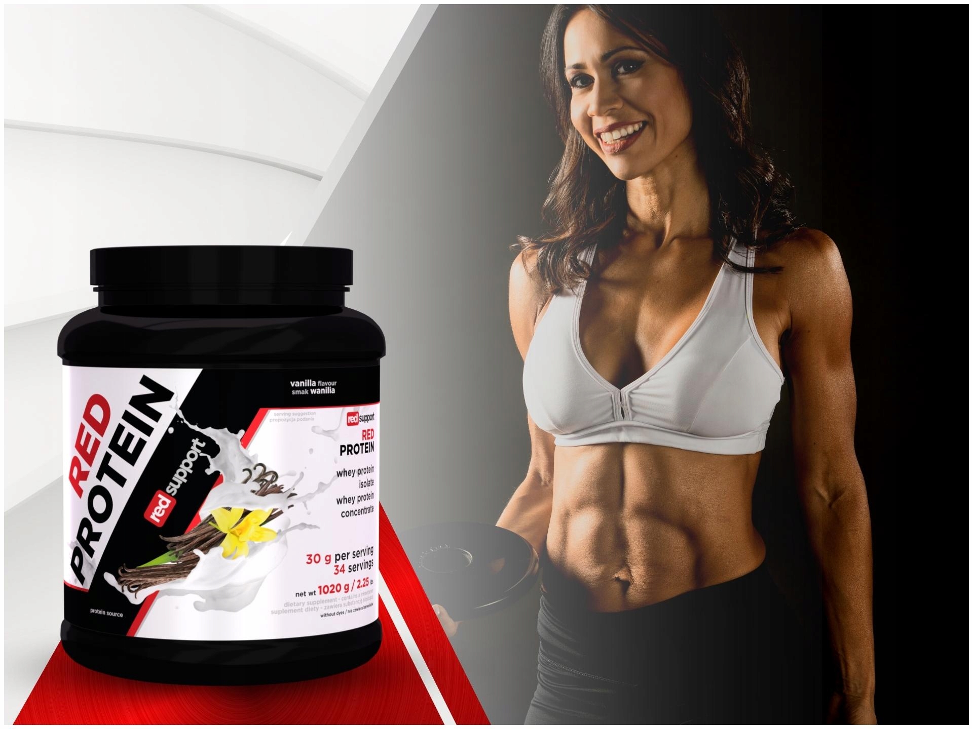 Red Protein, розроблений компанією Red Support, є унікальною комбінацією ізоляту та концентрату сироваткового білка, що забезпечує оптимальні дози поживних речовин для ефективного прийому добавок . Ця добавка була створена, щоб забезпечити ваше тіло необхідними білками, які підтримують розвиток і регенерацію м’язів. Кожна порція цієї добавки забезпечує приблизно 25 г білка, і це смачний і зручний спосіб доповнити цей важливий макроелемент у вашому щоденний раціон. Важливо, що продукт перевірено на чистоту, і ви побачите повну перевірку в картці продукту.