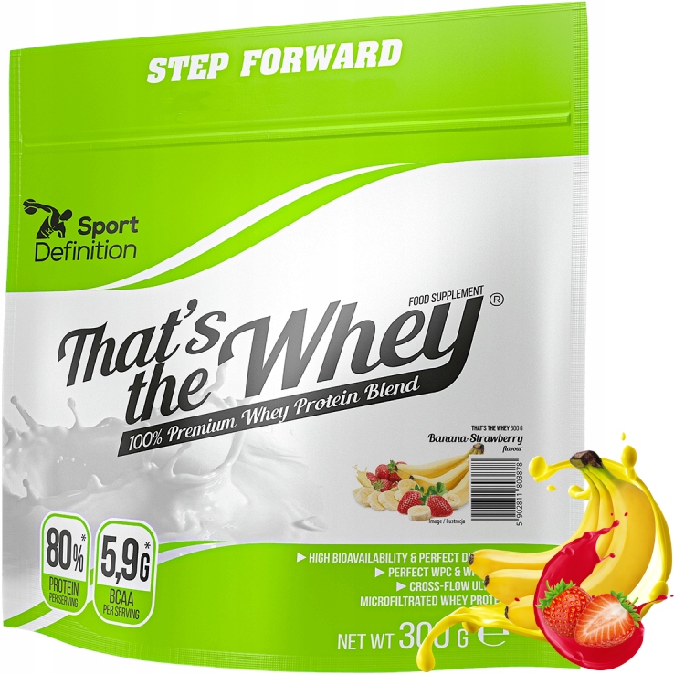 Висококласний білок добавка з майже легендарним смаком і безпроблемною розчинністю! Кожна порція є основою для приготування надзвичайно смачних протеїнових коктейлів. Він також ідеально підходить для коктейлів, приготованих зі свіжих фруктів. Все залежить від вас і ваших смакових уподобань. Проте можете бути впевнені, що That's The Whey від Sport Definition ніколи вас не розчарує!