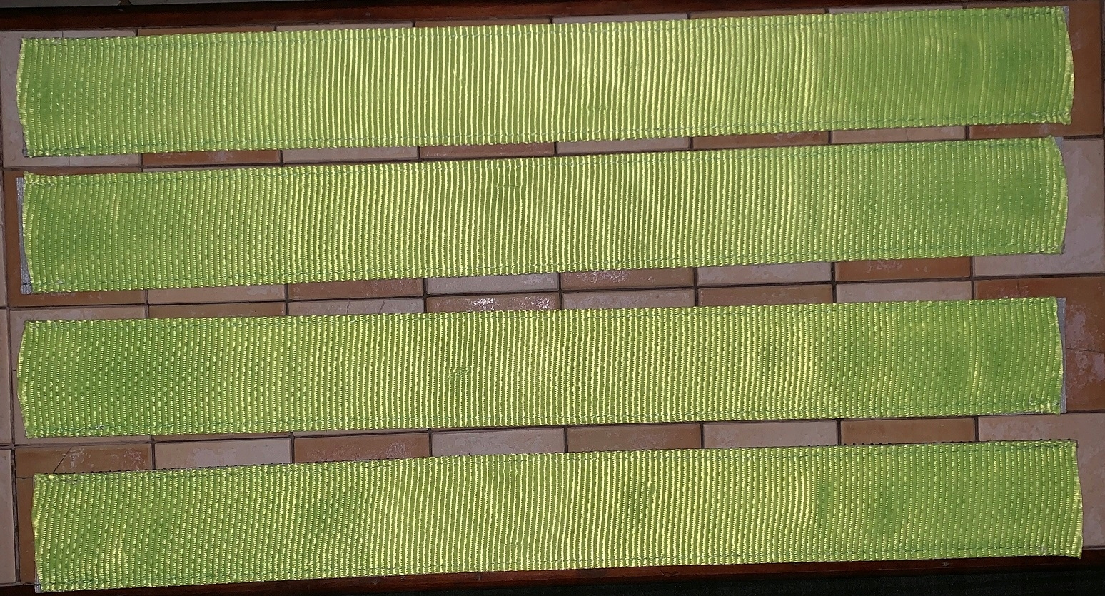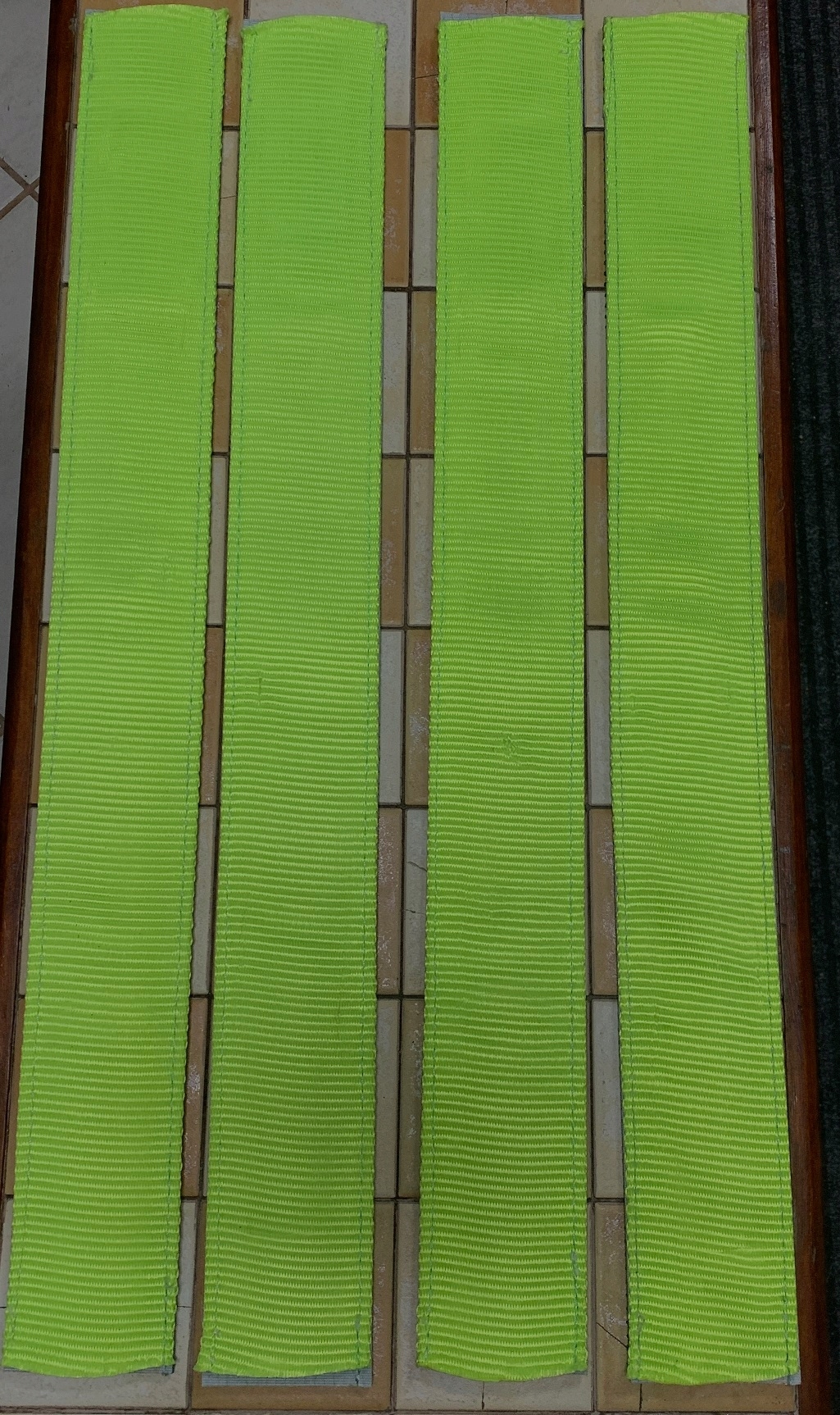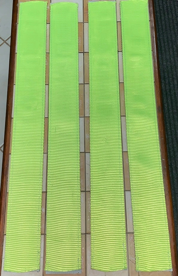 Трава розроблена для більшості ширин ременів, максимальна ширина ременя становить 50 мм, рукав дуже легко надіти на транспортний ремінь, потягнувши ремінь як рукав, який є гнучким, міцним і чудово притримується нерівномірних навантажень, відмінно тримає колесо - шина на своїй великій площині набагато краще 3-х точкових пластикових кубиків, зелена поверхня має прогумовані виступи, які ідеально підходять і утримують вантаж або шину, відмінно захищаючи вантаж від переміщення