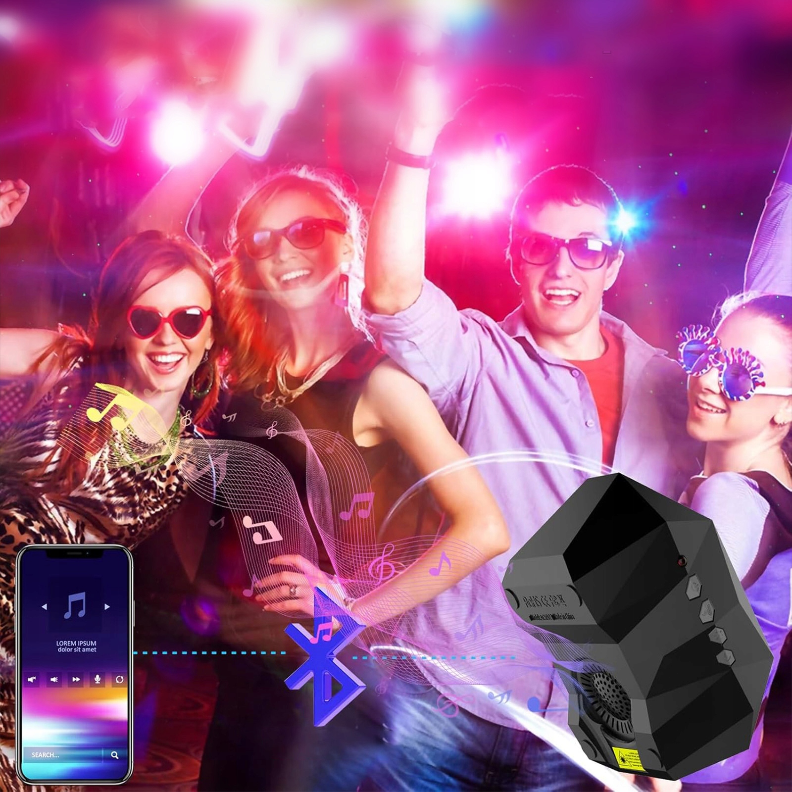 Вбудований високоякісний динамік Bluetooth, поєднуючись з однією кнопкою з пультом дистанційного керування, легким з'єднанням зі смартфоном. Світло пульсує ритм музики, створюючи унікальну атмосферу під час відпочинку чи вечірки.