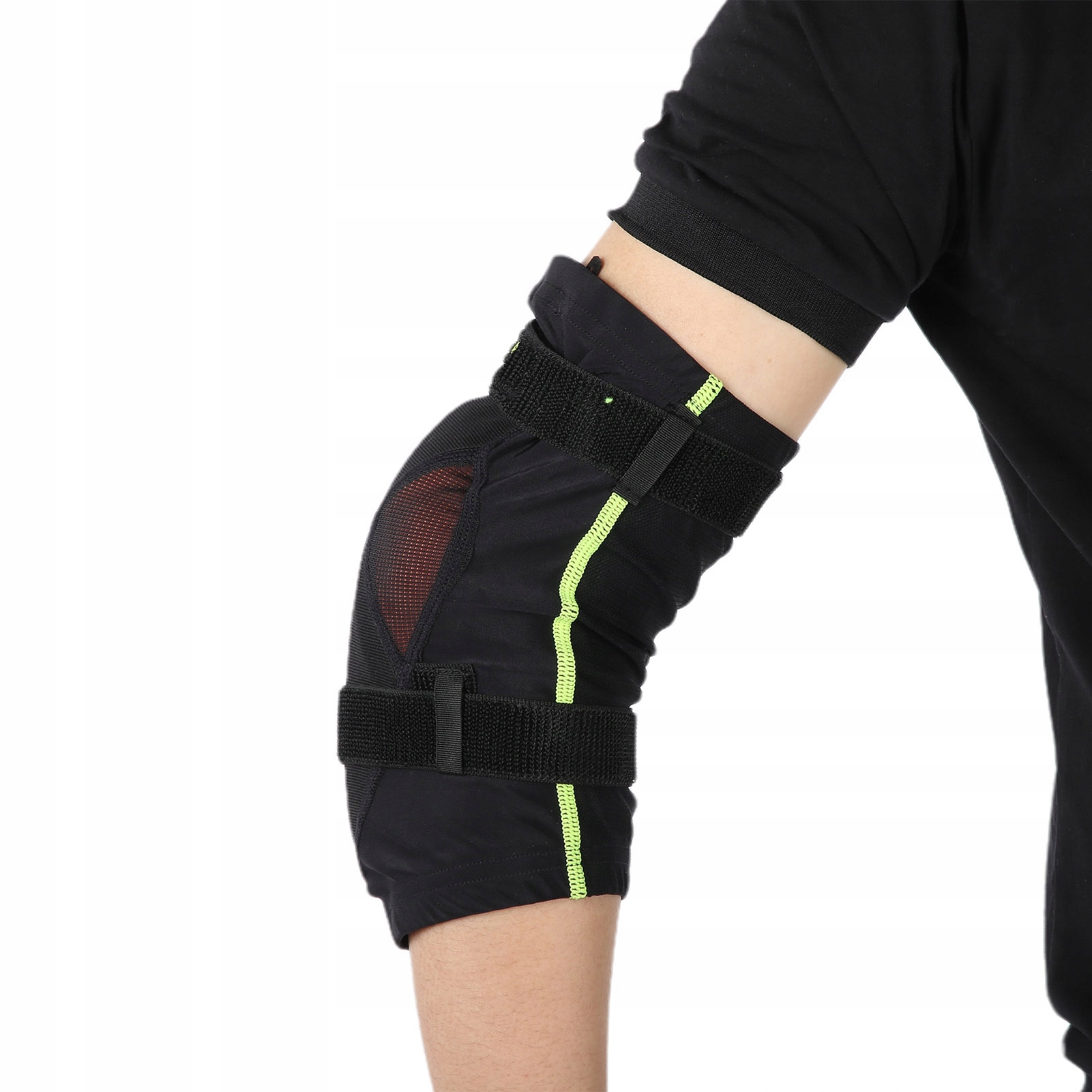 1, підходить для різноманітних видів спорту на відкритому повітрі, таких як їзда на велосипеді, лижах, роликових ковзанах, швидкісний спуск тощо. 2, основний матеріал виготовлено з високоеластичного волокна поліуретану в поєднанні з прохолодна сітчаста тканина, дихаюча смугаста тканина, легка, дихаюча та зручна в носінні. 3. Флуоресцентна зелена сітка нашита на класичну чорну основу, а тильна сторона і боки виготовлені з високогнучкого поліуретанового волокна, яке освітлює колір і значно збільшує гнучкість. 4. Як верхній, так і нижній ремені використовують високоефективний еластичний ремінь «два в одному» на липучці, який є ремінцем на липучці та еластичним ременем, з хорошою еластичністю, широким діапазоном регулювання, і обидва придатні. 5. Вибрано полімерний матеріал Memory PU, який є м’яким і міцним. Професійний наповнювач для засобів захисту. Було додано додатковий шар внутрішньої прокладки EVA товщиною 7 мм, а двошаровий захист і амортизація є безпечними та надійними.