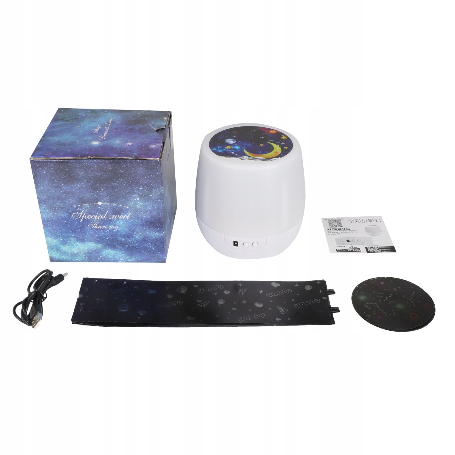 з шістьма різними темами: сузір'я, сонячна система, зоряне небо, день народження, океан, місяць. Ця прекрасна сцена відображатиметься на стелі або стіні, створюючи романтичну та сонну атмосферу.