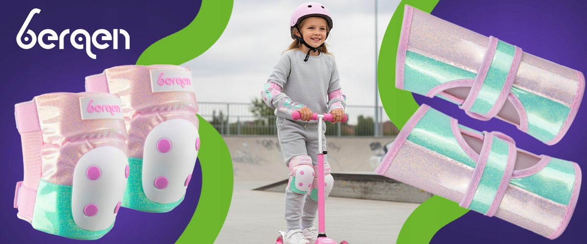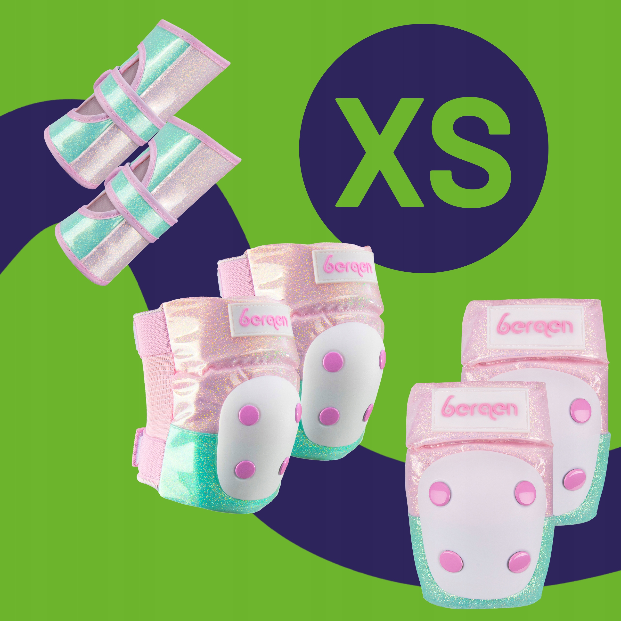 Протектори для роликів для дітей набір протекторів BERGEN XS рожеві м'ятні