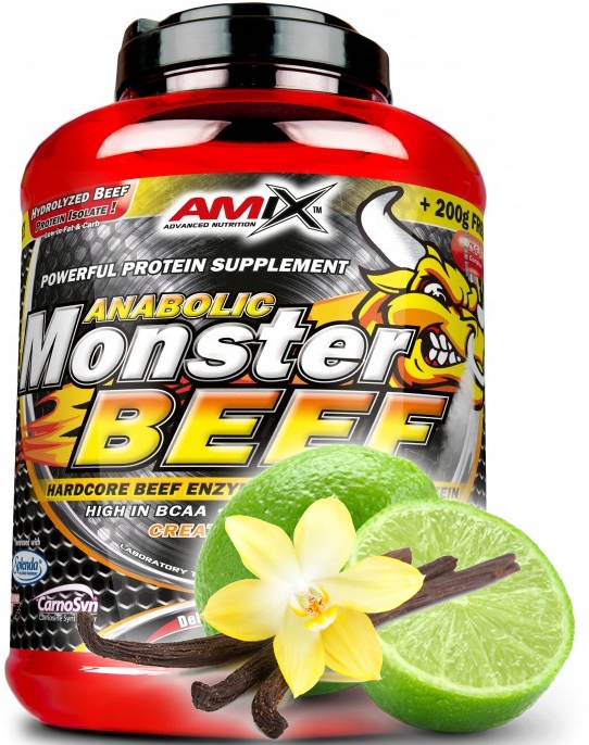 Anabolic Monster Beef Protein, - це продукт, який на 90% складається з яловичого альбуміну, який наразі є найякіснішим джерелом білка на ринку. Завдяки гідролізу час перетравлення білка значно скорочується. Monster Beef також збагачений моногідратом креатину, що підвищує енергетичний потенціал, енергію, регенерацію та зростання м'язової маси. Monster Beef також містить Nitro Shot Complex, завдяки якому всі необхідні інгредієнти будуть миттєво доставлені до м'язових волокон. Цей продукт також містить Phosphomatrix, який забезпечує всі необхідні мінерали, які відіграють ключову роль в організмі кожного спортсмена.