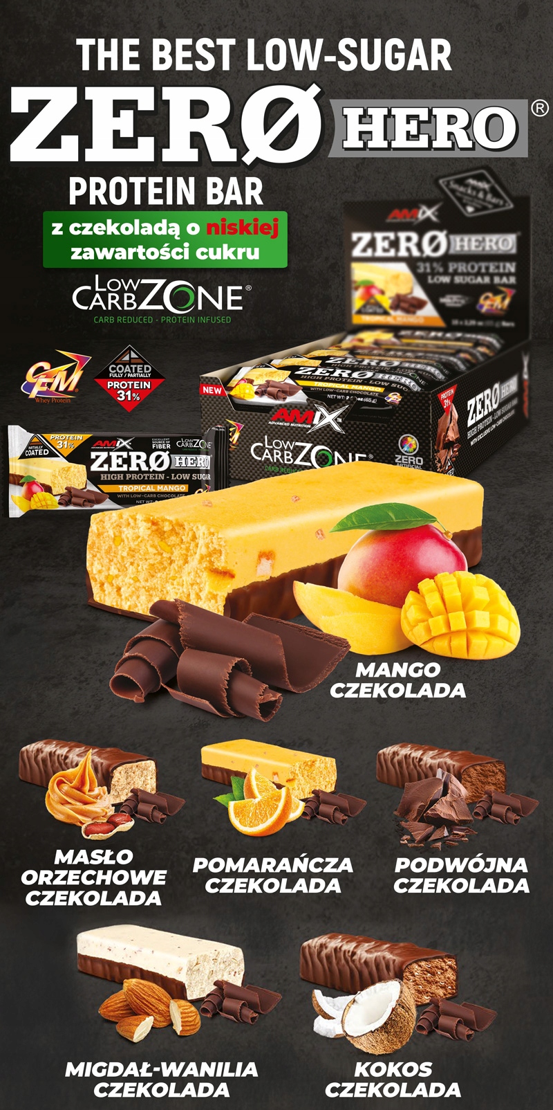 AMIX ZERO HERO – ПРОТЕЇНОВИЙ БАТОНЧИК З НИЗЬКИМ ВМІСТОМ ВУГЛЕВОДІВ