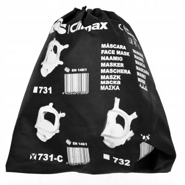 Протигаз моделі CLIMAX 731 призначений для роботи в середовищі з вмістом кисню понад 19,5%. Маска сумісна з фільтрами та комбінованими фільтрами зі стандартною різьбою - відповідає стандарту EN 148/1