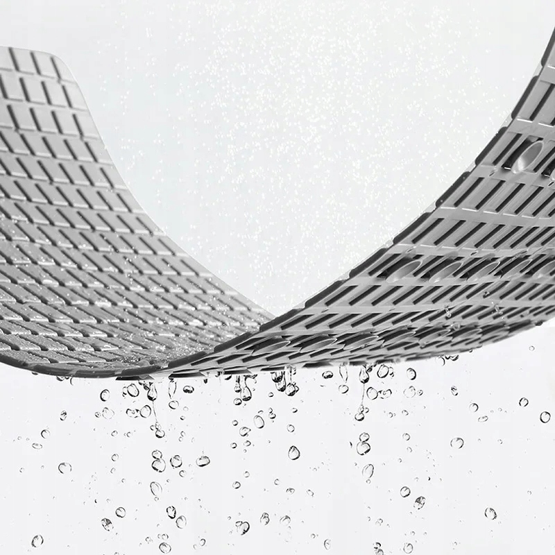 Інноваційний сітчастий малюнок на поверхні килимка не тільки забезпечує протиковзкі властивості, але й масажує стопи під час купання.
