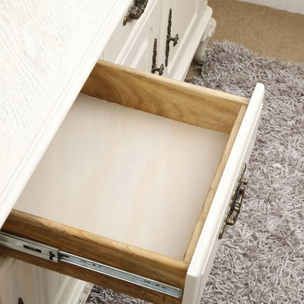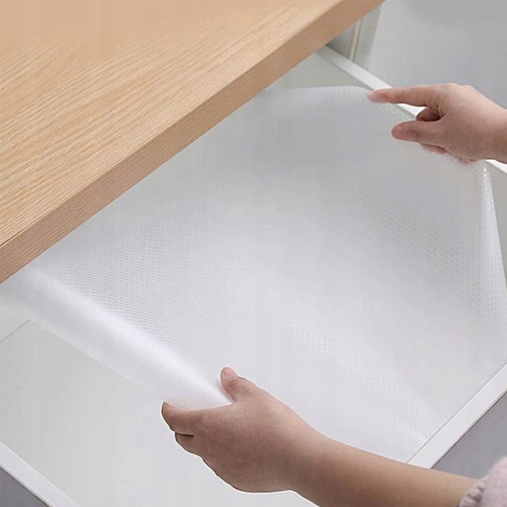 Килимок для холодильника можна розрізати відповідно до внутрішньої частини холодильника. Просто виріжте його ножицями відповідно до розміру вашого холодильника. Він не вбирає запахи та плями, не утворює плісняви та вологи, є водонепроникним, тож на ньому можна безпечно розміщувати продукти, фрукти та овочі в контейнерах чи лотках.