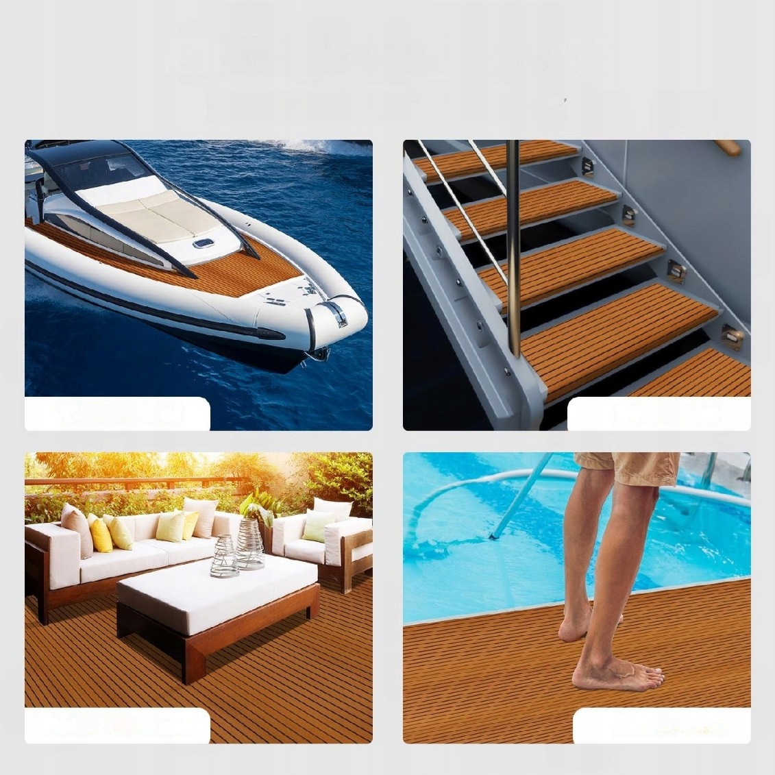Один рулон палубного килима EVA служить багатьом цілям, покриваючи площу до 2,78 м². Захищає човни, сходи, тренажерні зали, басейни та багато інших місць.