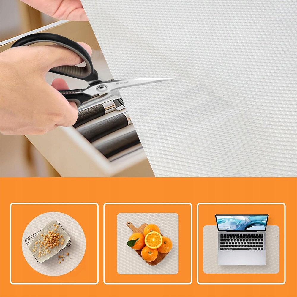 Захист багатьох поверхонь! 🛋️ Килимок ідеально підходить як підкладка для кухонних ящиків, полиць холодильника, шаф, а також для захисту стільниць або шаф для ванної кімнати.