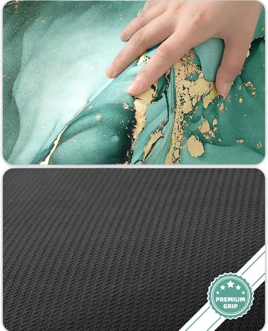 Протиковзке гумове дно Тильна частина килимка покрита міцною гумою, яка краще прилягає до поверхні. Така конструкція запобігає скочуванню та зміщенню килимка, що може призвести до ковзання, а також забезпечує безпеку вас і вашої родини. Увага! Перед використанням висушіть нижню частину протиковзкого килимка та поверхню підлоги, щоб забезпечити максимальне зчеплення.