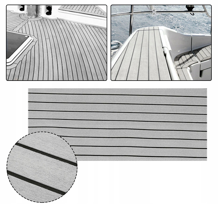 Протиковзкий килимок - практична та естетична прикраса. Ви можете використовувати його у своєму човні, яхті або вдома. Завдяки нашому килимку ваш човен придбає більше стилю та елегантності. Килимок самоклеючий, тож його легко встановити.