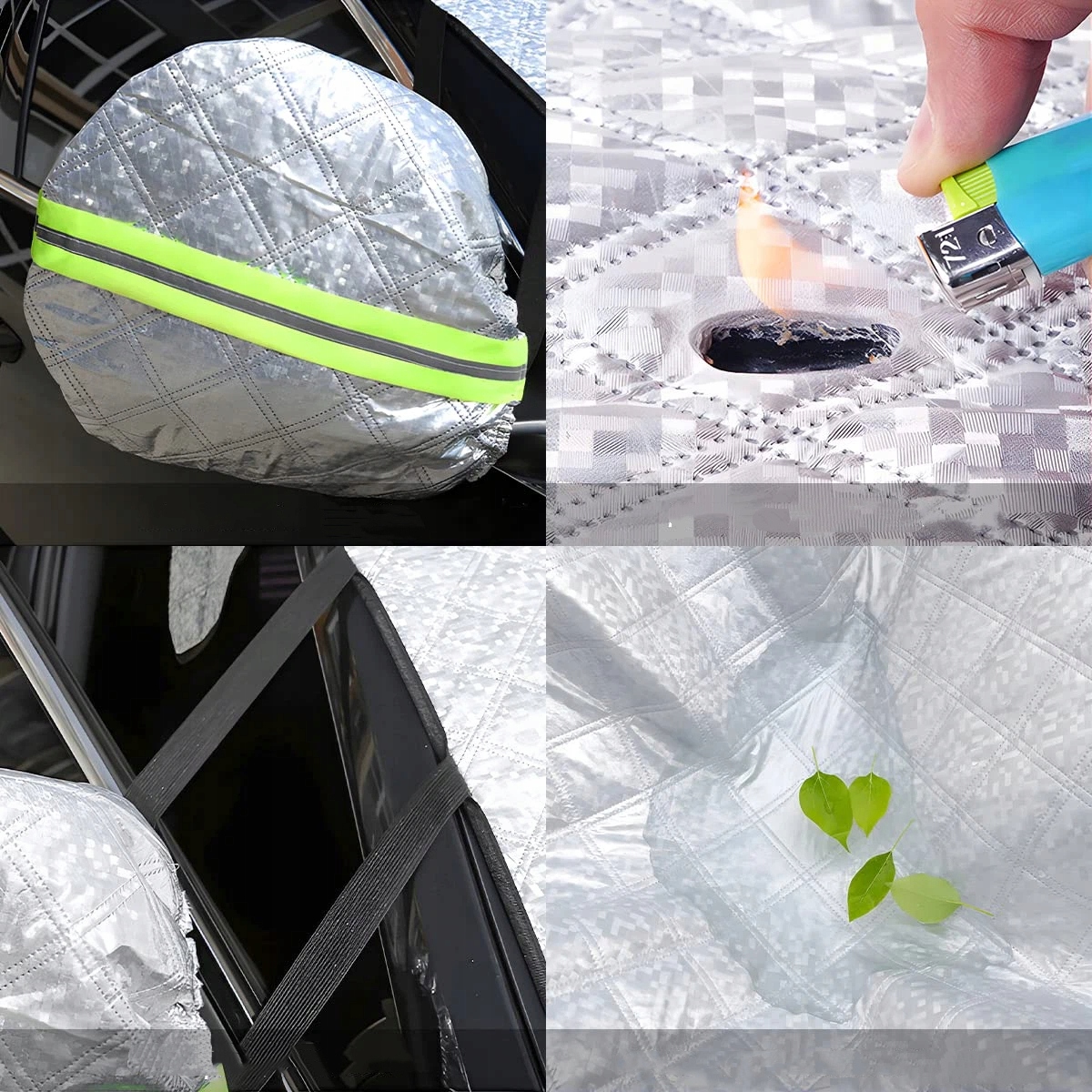 Якість: виготовлений із чотиришарового матеріалу (алюмінієва фольга + поліпропіленова вата + тканина, що не пліснявіє), який є водонепроникним, вогнетривким, стійким до хижаків, захищає від морозу та УФ-променів. Чохол не пошкоджує скло та захищає двірники, продовжуючи термін їх служби.