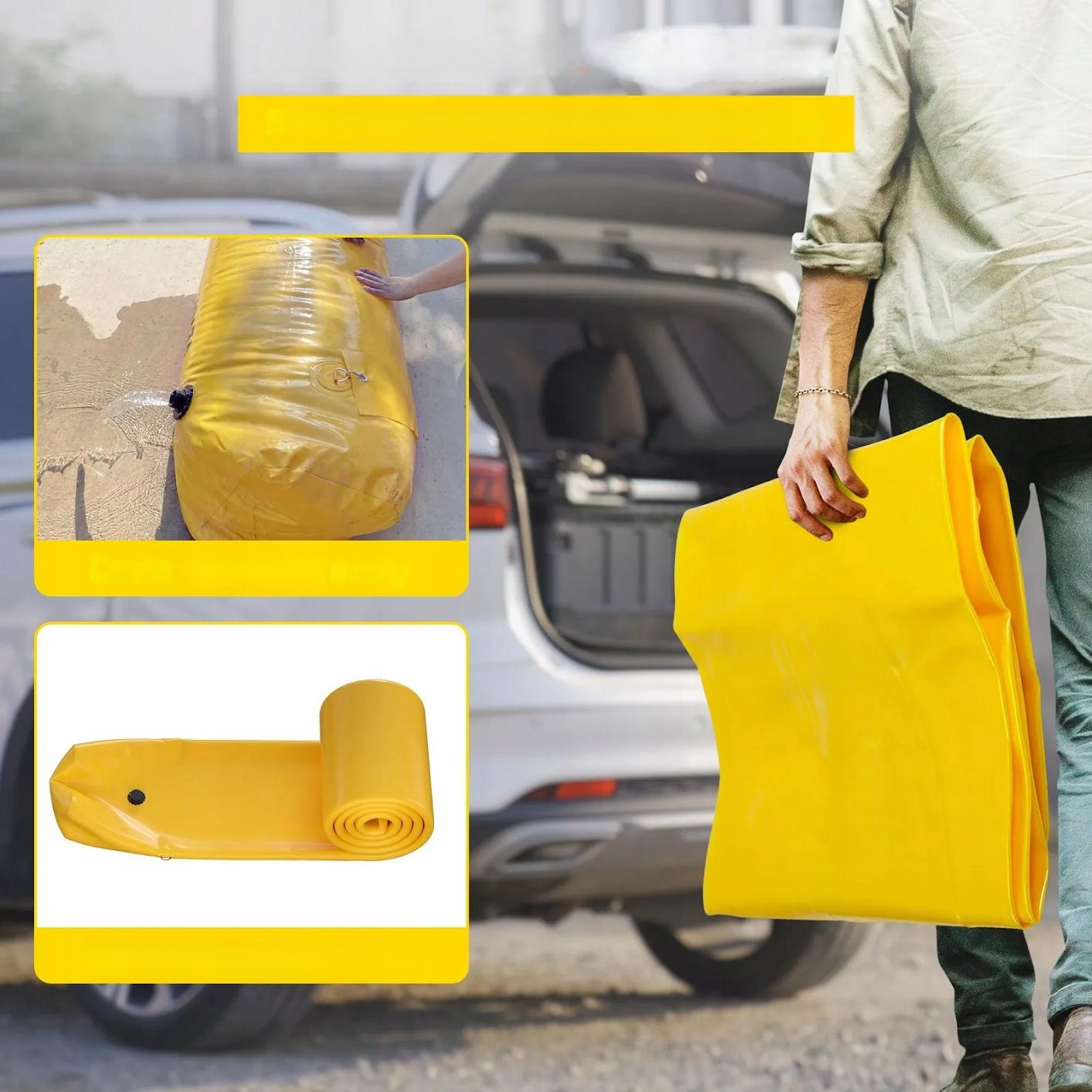 - ✅ Ефективний бар’єр проти повеней: 7,3 метри завдовжки створює міцний бар’єр, який захищає від води об’ємом 290 літрів і вагою 300 кг у заповненому стані.