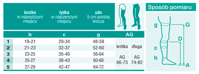 Умовою ефективності компресійної терапії є підбір виробу з правильно підібраним тиском і виробу потрібного розміру. Розмір слід визначати, виходячи з обхвату ноги та вимірювань довжини в зазначених точках.