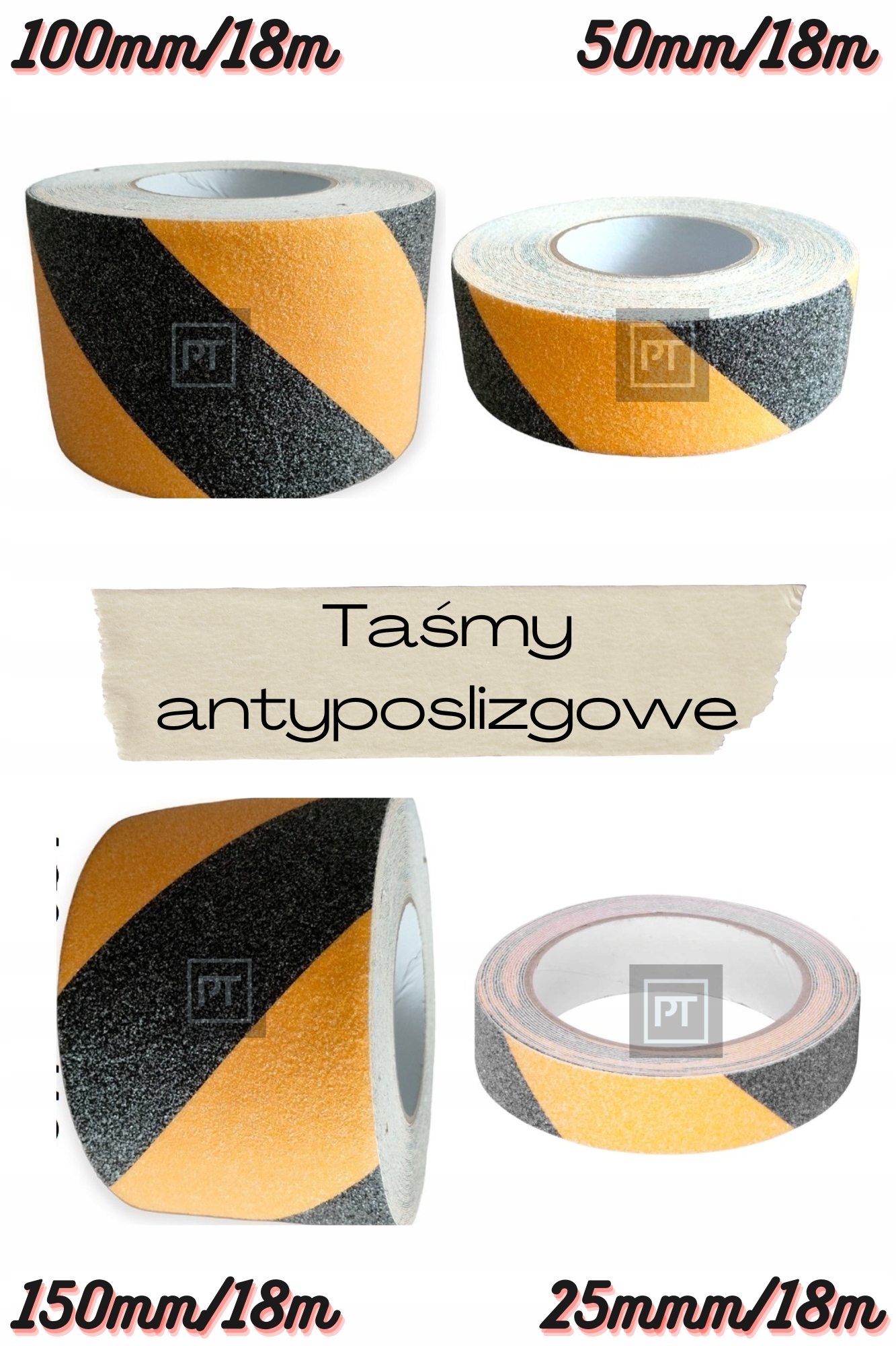 ПРОТИСКЛИЗКА СТРІЧКА жовто-чорна 25мм 18м ДЛЯ СТРАБИН, попередження про здоров'я та безпеку
