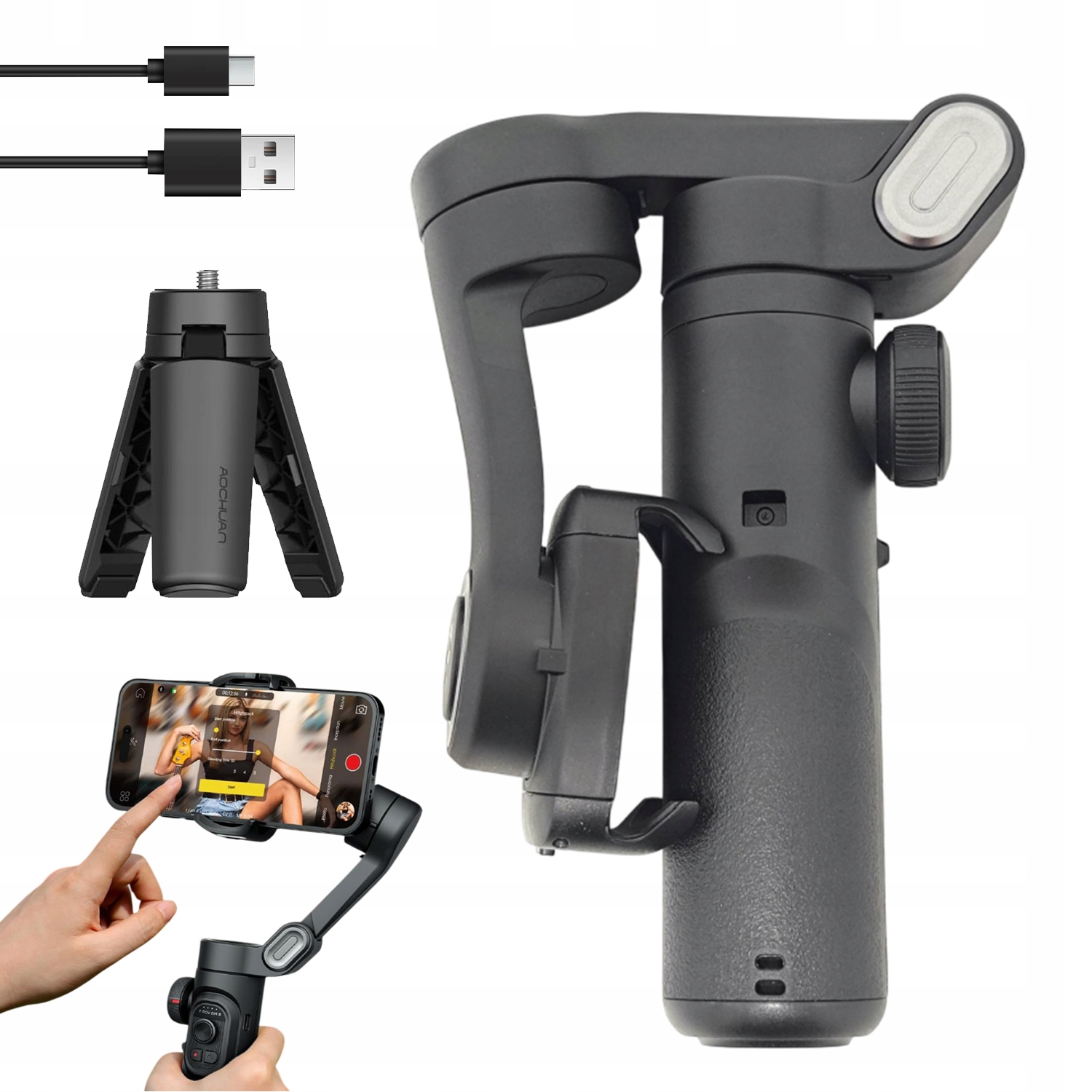 Стабілізатор підвісу має широкий діапазон сумісності. Розумний. Ви можете завантажити нашу безкарданну програму в магазині Apple і Google, ввівши пошуковий запит «AOCHUAN», щоб перевірити, чи вона доступна на вашому телефоні чи ні, і відкрити для себе всі функції, такі як Hitchcock, Inception, Slow Motion, Time Lapse, Panorama тощо.