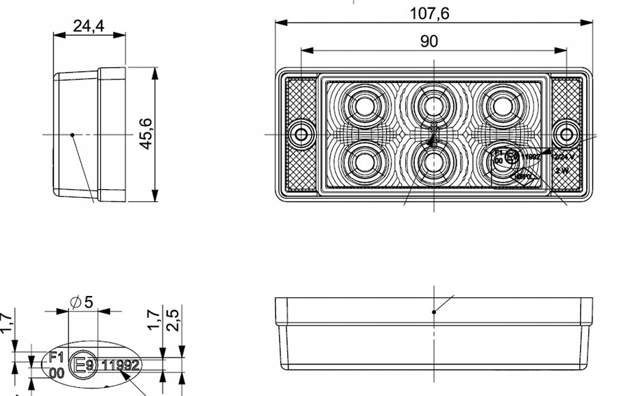 - розмір: 107,6 х 45,6 глибина. 24,4 мм