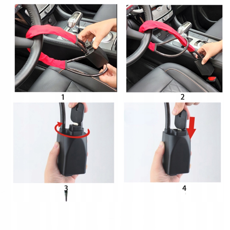 1. Безпечне кермо з замком має міцну конструкцію для захисту вашого автомобіля від крадіжки. Це одночасно блокує кермо та гніздо ременя безпеки.