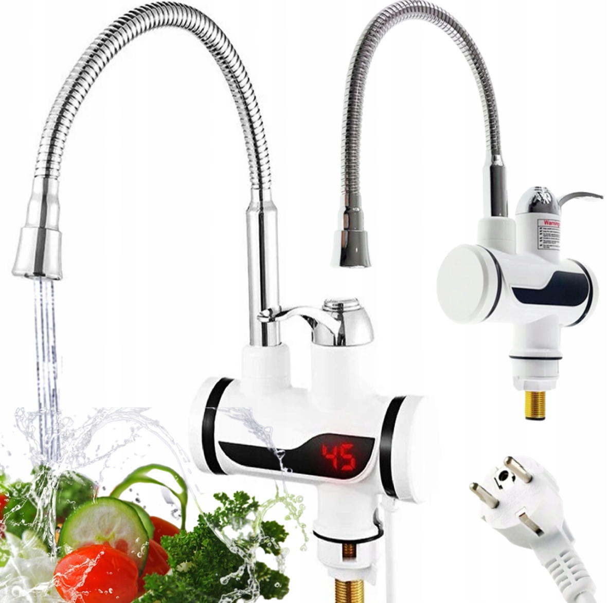 Проточний водонагрівач підвищує температуру проточної води до 60°C - просто натисніть ручку. Червоне світло вказує на готовність пристрою до роботи. Однак, якщо вам потрібна лише холодна вода, просто потягніть ручку нагрівача. Зручний і простий у використанні.