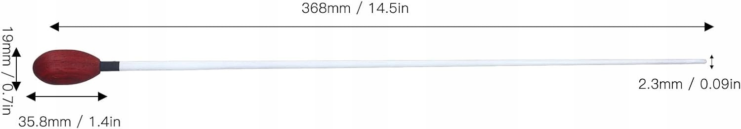 Хороша продуктивність Диригентська паличка має відповідну довжину та малу вагу, що забезпечує баланс і послідовність, що сприяє покращенню якості концертного виконання. Комфортне керування з вишуканою обробкою, ця музична палиця може забезпечити найкращий контроль і реакцію, покращуючи ваш досвід диригування та оптимізуючи результати виконання. Сфера застосування Ця диригентська паличка підходить для вчителів-початківців або професійних музикантів, які часто використовуються в сценаріях хорових симфонічних концертів, оркестрів та інших музичних вистав. Зручна рукоятка Музична паличка має блискучий вигляд без задирок і порізів, що забезпечує зручне захоплення та м’який дотик, і ви можете використовувати її з упевненістю. Міцні матеріали Завдяки міцній ручці з червоного дерева та стрижню зі скловолокна ця диригентська палиця є міцною та довговічною, її не легко зламати чи зігнути, її можна використовувати неодноразово.