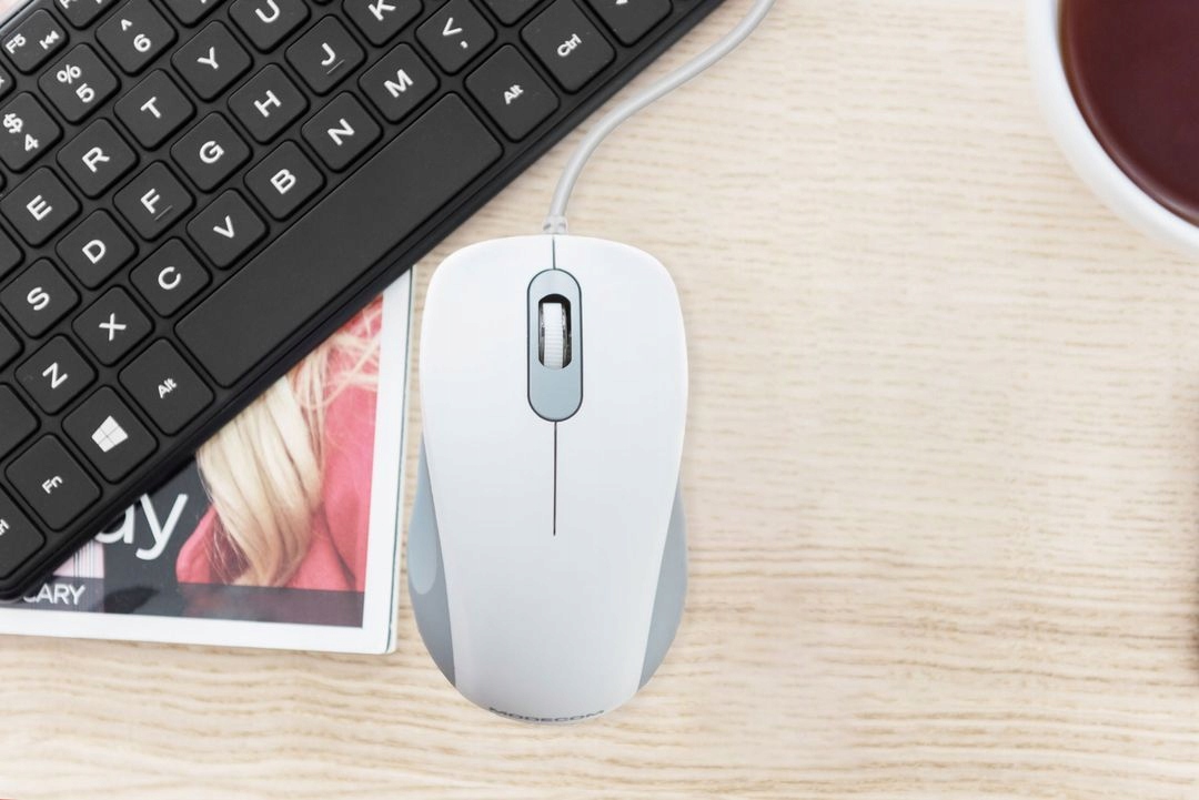 це високоякісна дротова оптична миша з надтихими перемикачами без класичного клацання. Миша чудово працює як на світлих, так і на темних поверхнях. Поверхня миші виготовлена з приємного на дотик матеріалу, перевага якого полягає в тому, що на ній не залишаються відбитки пальців після використання. Ретельно підібраний розмір миші та її невелика вага гарантують комфортну роботу для більшість користувачів. Кабель довжиною 1,8 метра дозволяє легко керувати мишею в будь-якому середовищі.