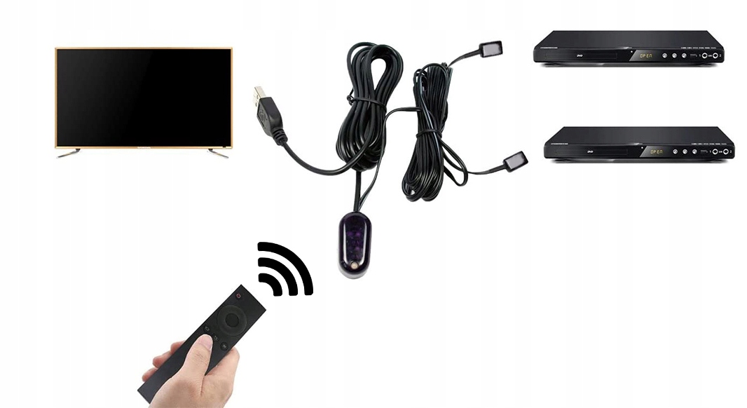 Дротове розширення дистанційного керування для аудіо-відеообладнання дозволяє керувати навіть декількома закритими або прихованими пристроями, наприклад, у шафі.