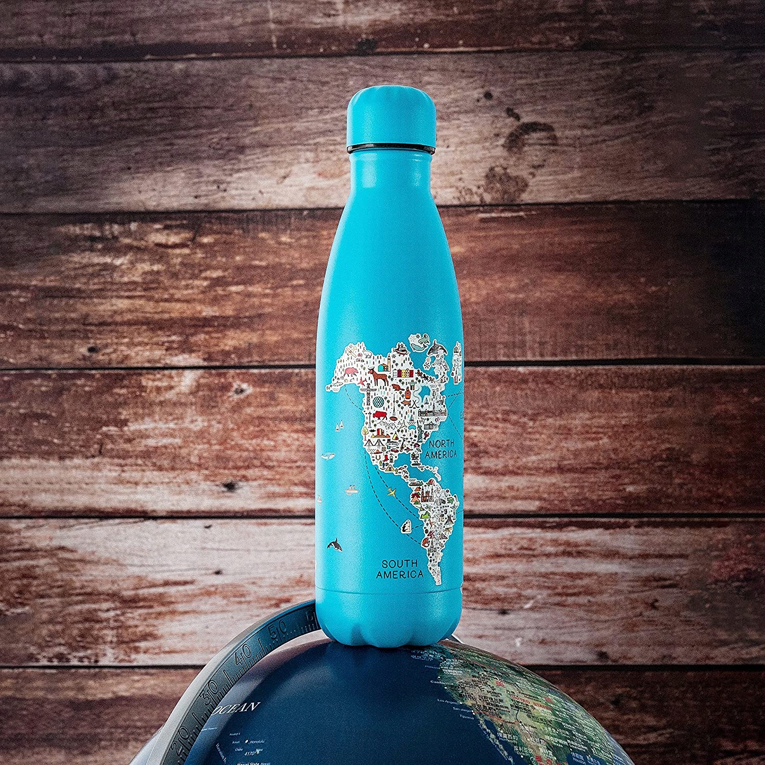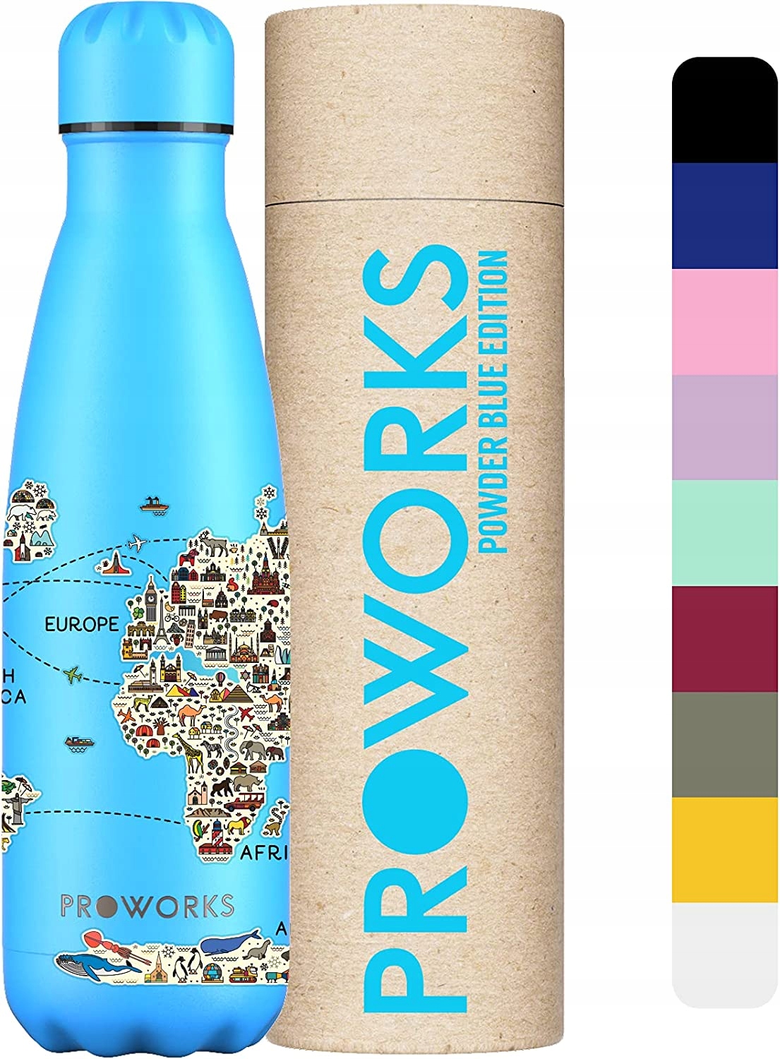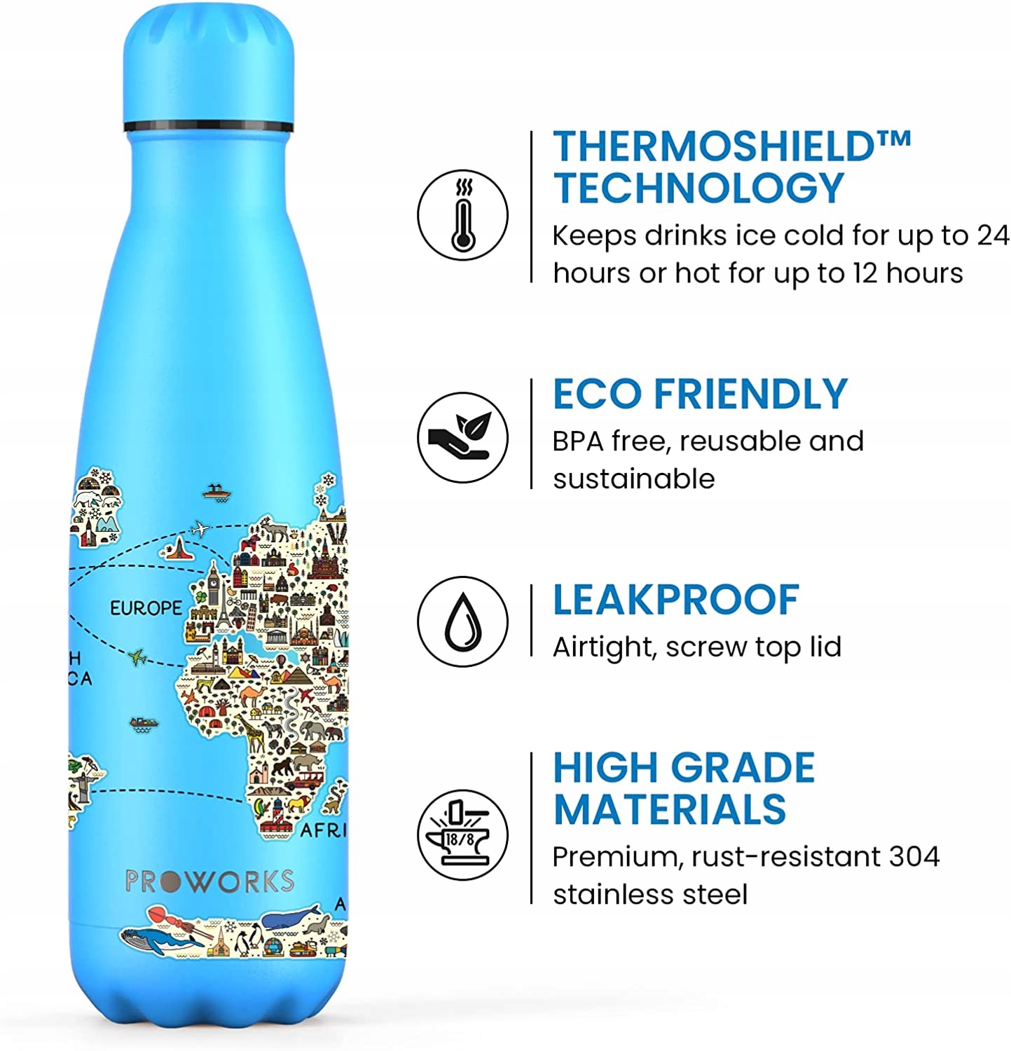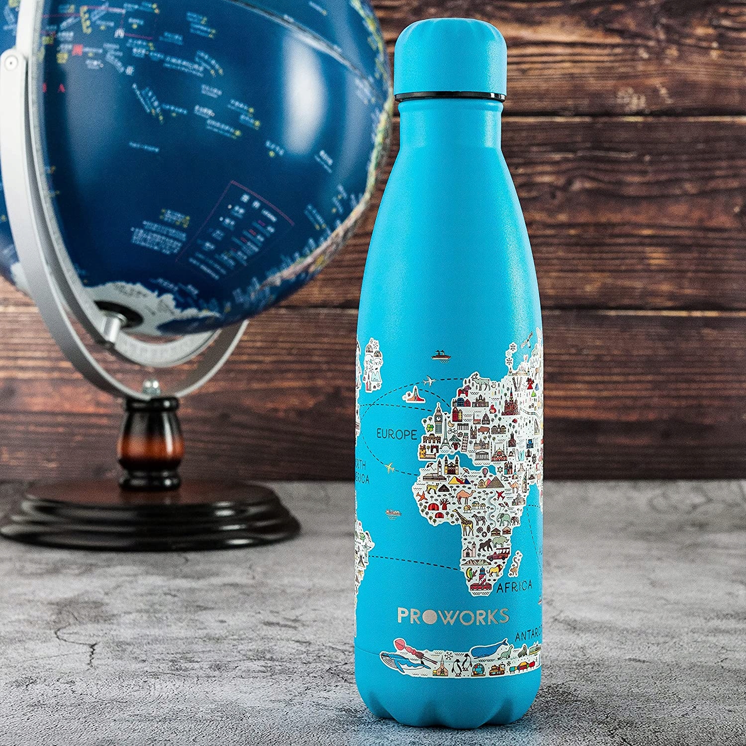 Спортивна пляшка для води Proworks Performance з нержавіючої сталі, вакуумна пляшка з подвійною ізоляцією зберігає температуру гарячих напоїв протягом 12 годин і холодних напоїв протягом 24 годин, для дому, роботи, тренажерного залу та подорожей, 1000 мл, синій, карта світу< /h1>