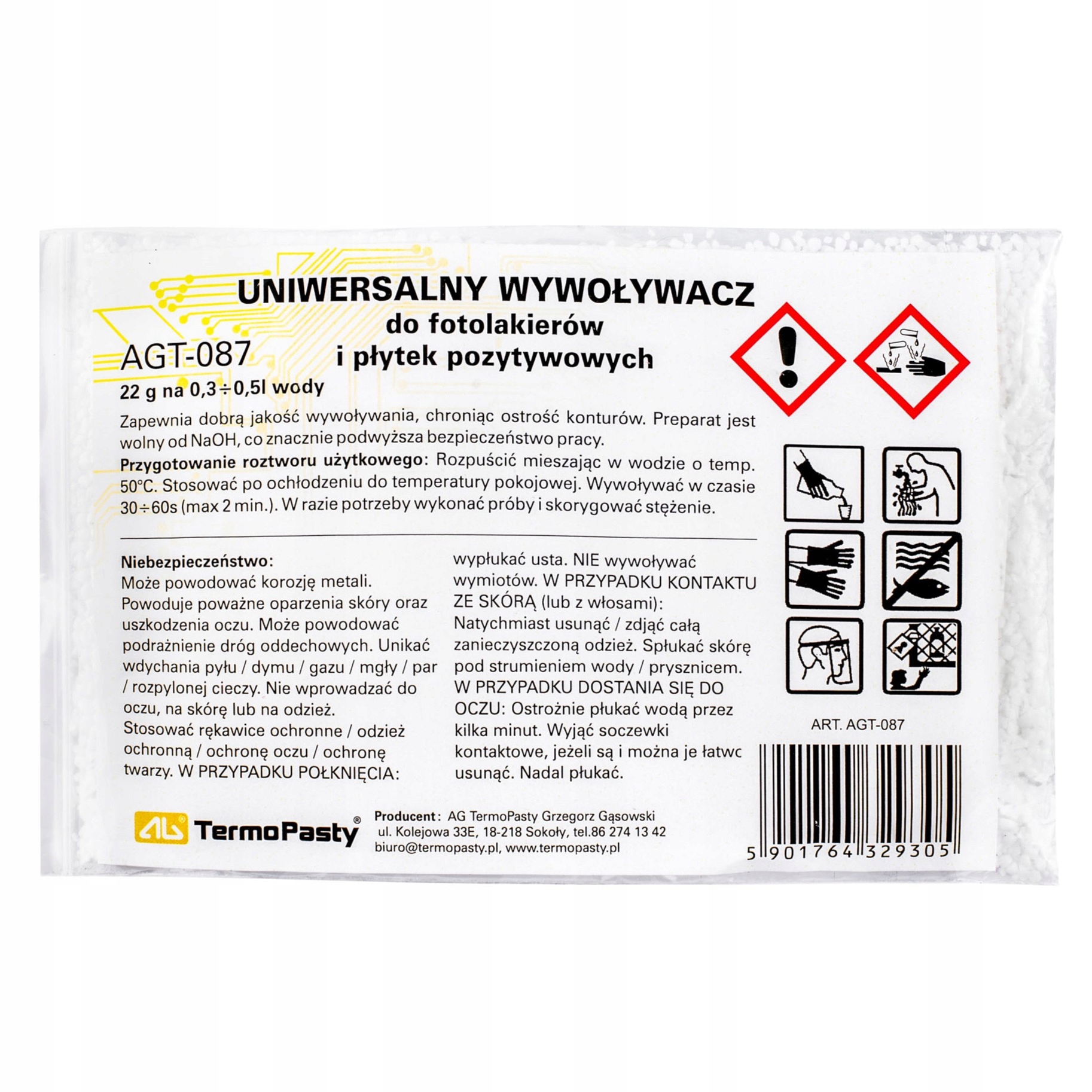 Універсальний проявник для фотолаків і позитивних пластин, може використовуватися як продукт для проявлення фотографій. Висока якість і безпека