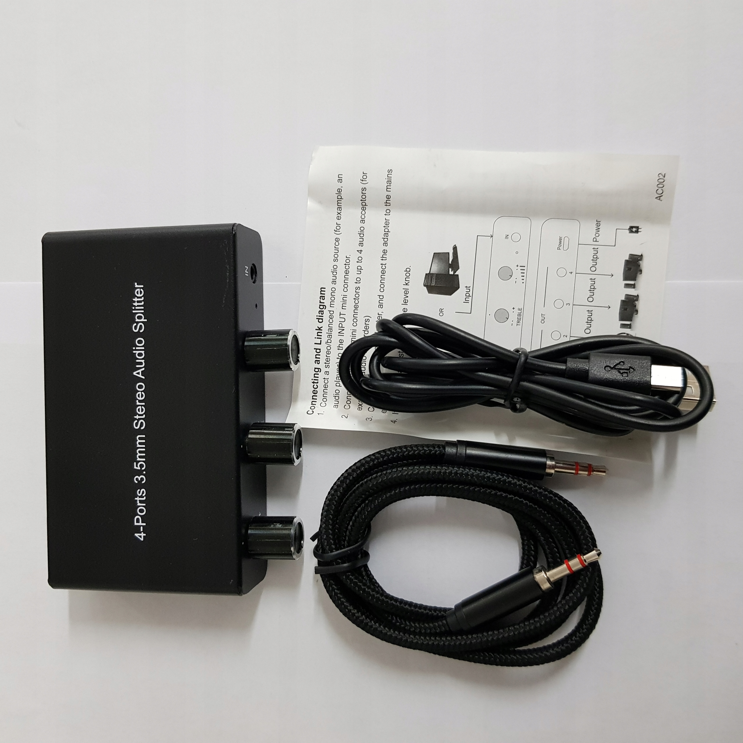 Розділіть одне джерело звуку на чотири однакові виходи. Ідеально підключити кілька пар навушників або активних динаміків - без необхідності безперервних кабелів. Сумісність: