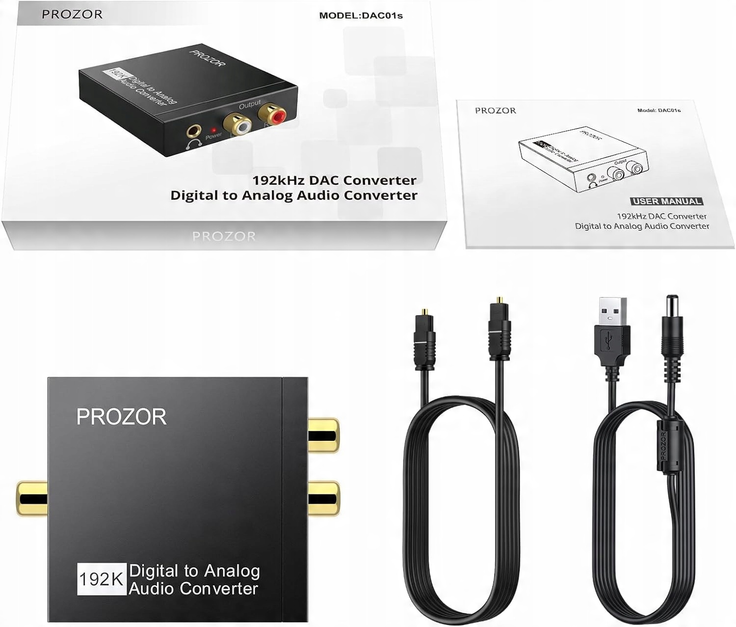 PROZOR DAC001 192KHz Przetwornik DAC Cyfrowy SPDIF TOSLINK konwerter stereo