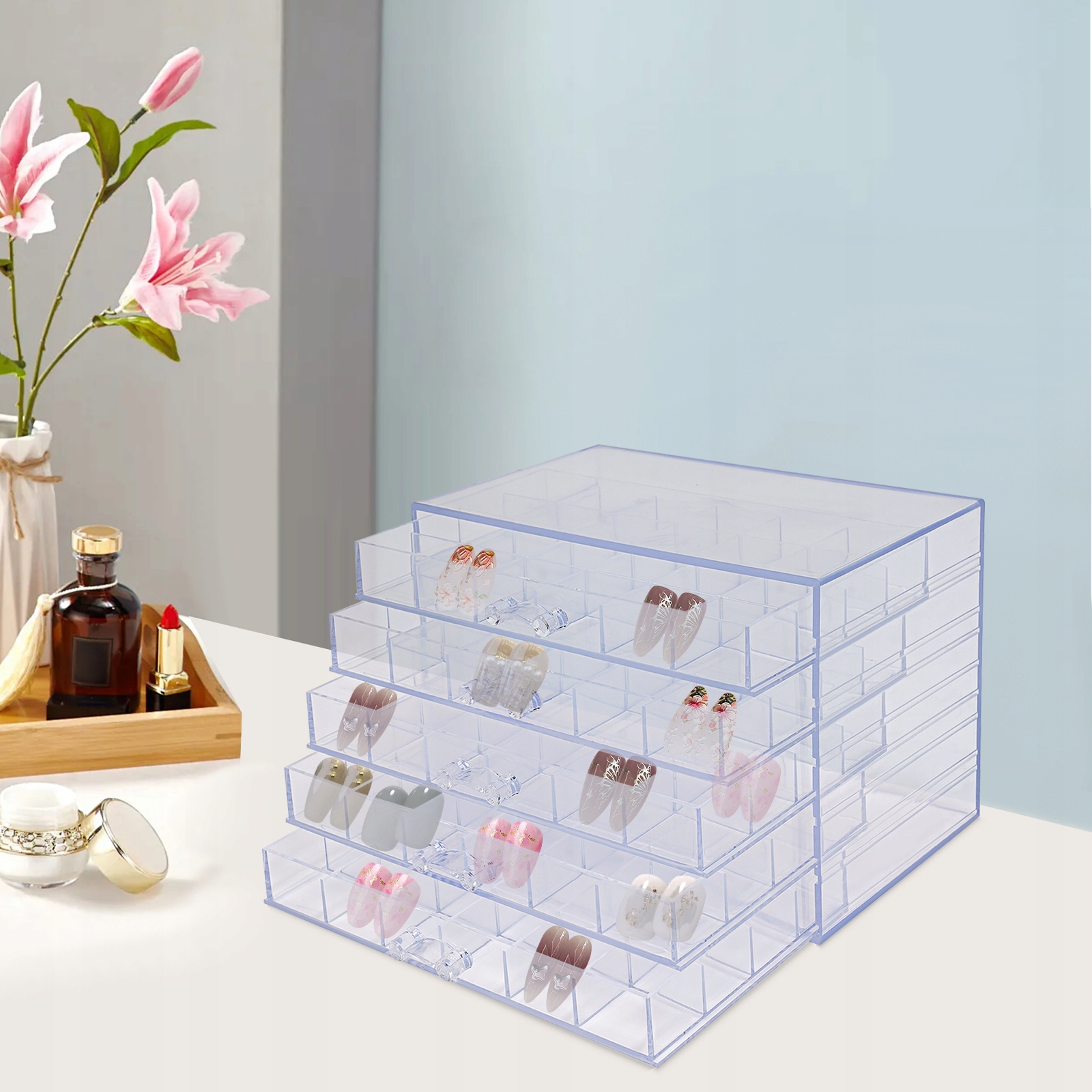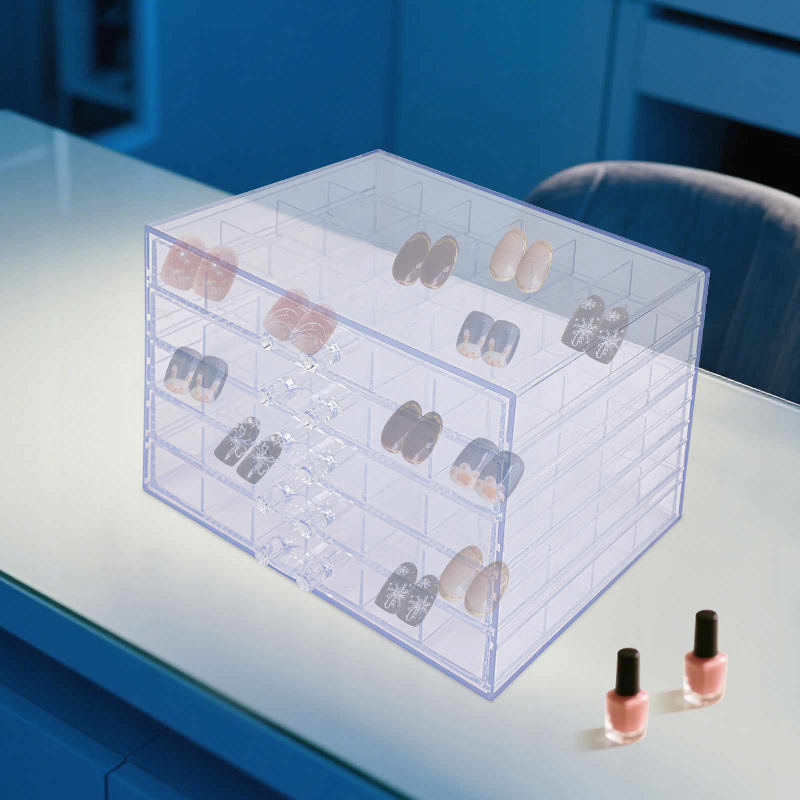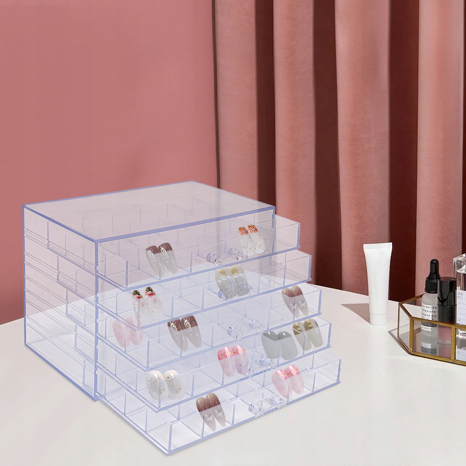 - Ідеально підходить для нігтьових майстрів, щоб розмістити в магазині всілякі складні прикраси для нігтів; Якщо ви самі любитель нігтів, ви також можете придбати його та розмістити на комоді, щоб зберігати матеріали для нігтів та інші аксесуари. Його також можна використовувати для зберігання великої кількості дрібних аксесуарів, деталей, дрібних предметів тощо, щоб заощадити місце!