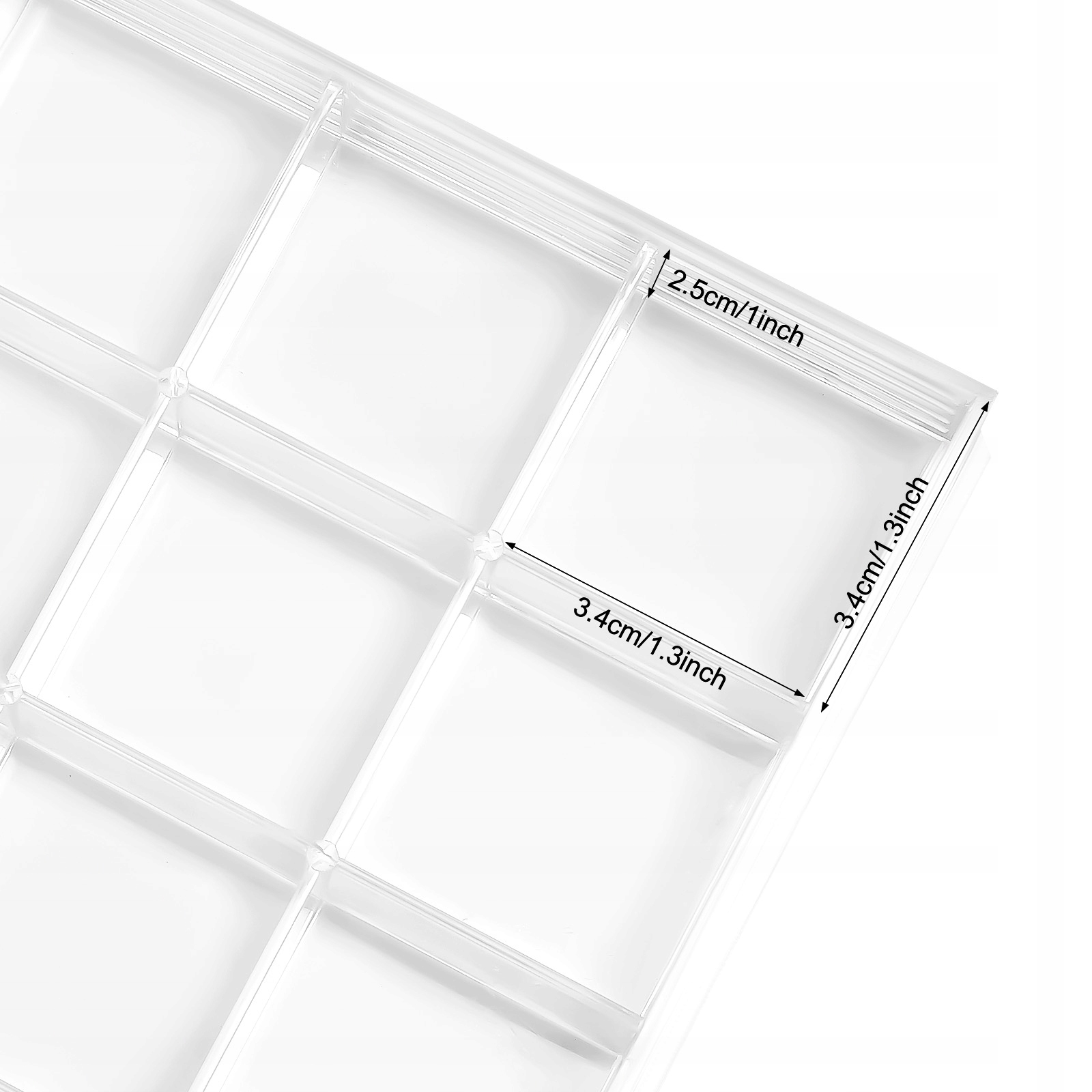 - Будь-який маленький розмір клітини: 3,4 * 3,4 * 2,5 см / 1,3 * 1,3 * 1 дюйм