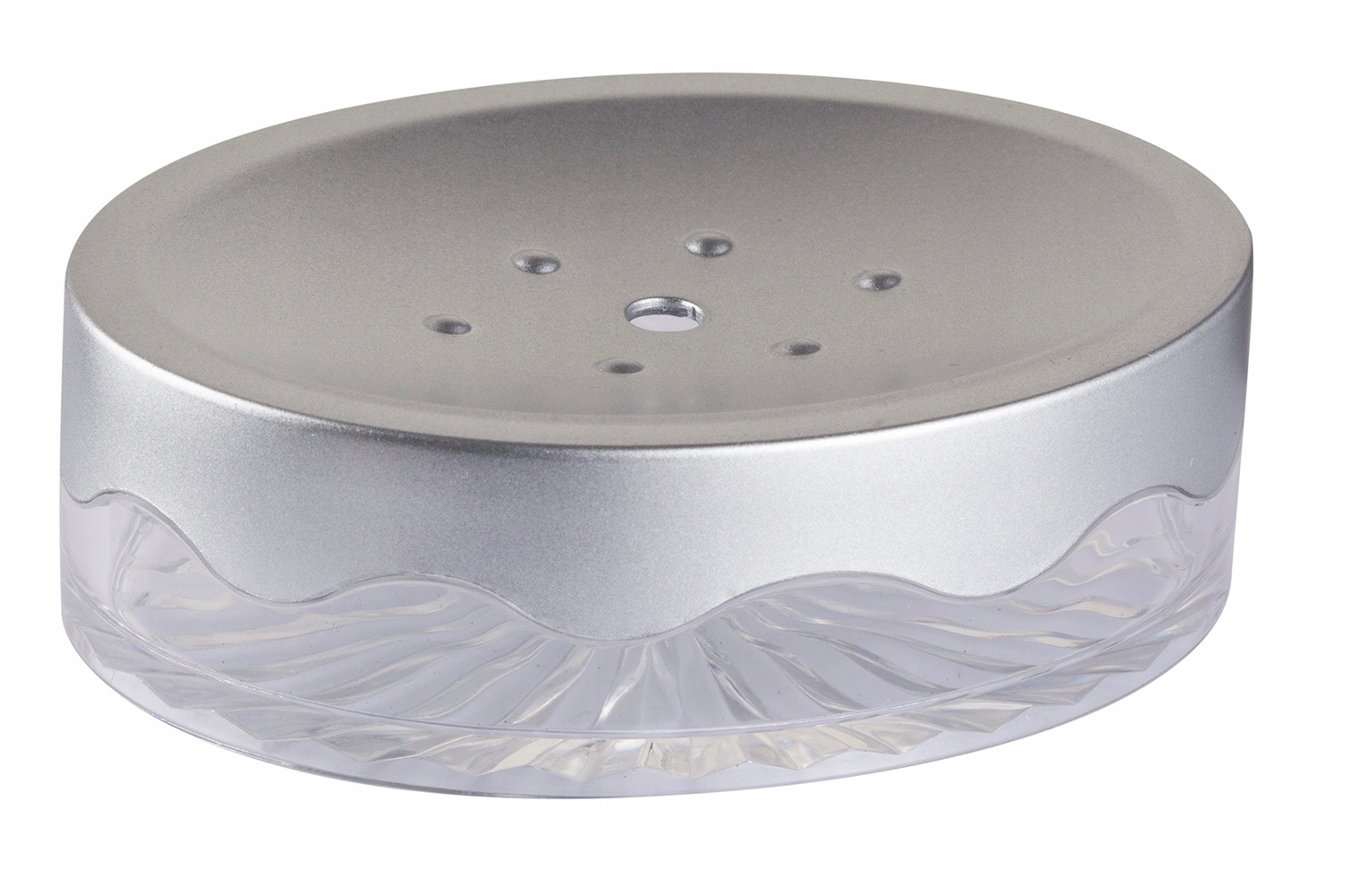 Практична мильниця сучасної мінімалістичної форми стане цікавою прикрасою аксесуарів для ванної кімнати. Мильниця Clear BISK відрізняється гарним, оригінальним дизайном, що поєднує в собі елементи прозорого і сріблястого пластику. Привертає увагу цікавий візерунок. Верхня частина мильниці має форму увігнутої срібної чаші, нижня - прозора ємність. Мильниця має злив води. Його легко мити і підтримувати в чистоті. Завдяки увігнутій поверхні мило не рухається - його можна легко опустити, не ризикуючи зісковзнути в раковину або ванну. Мильниці BISK — це функціональні, естетичні аксесуари, які підійдуть як у традиційних, так і в сучасних ванних кімнатах.